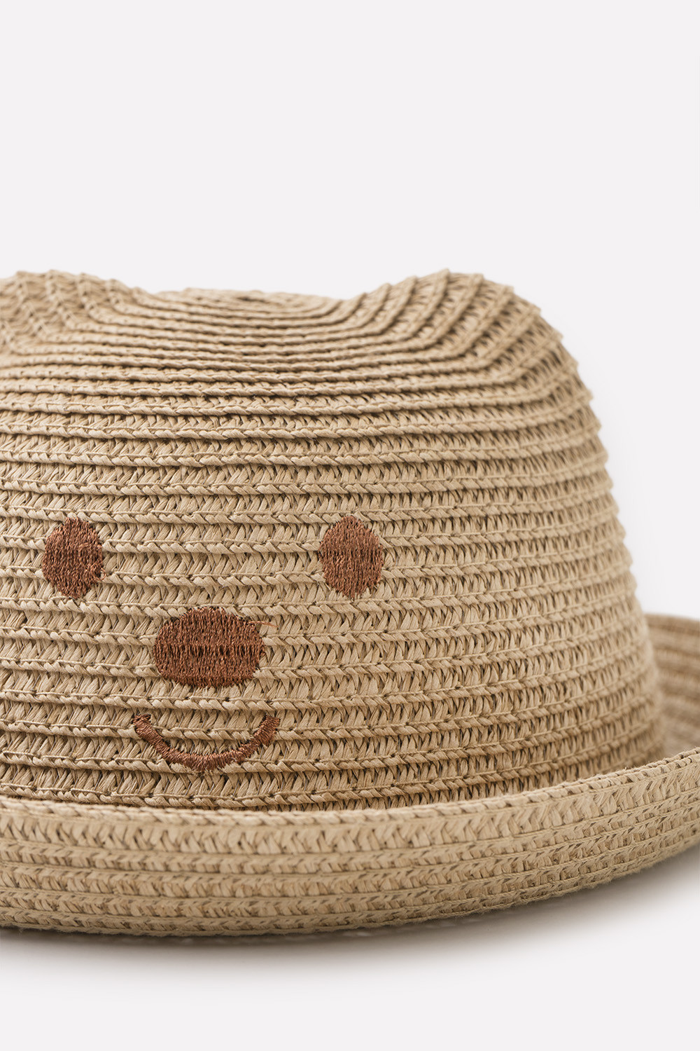 Модная соломенная шляпа с короткими полями и декоративными ушками. Спереди украшена очаровательным принтом в виде мордочки медвежонка. Защищает голову от солнца и хорошо подходит для тёплой и жаркой погоды. Натуральный материал пропускает воздух и позволяет коже дышать. Легко очищается влажной мягкой щёткой или губкой.