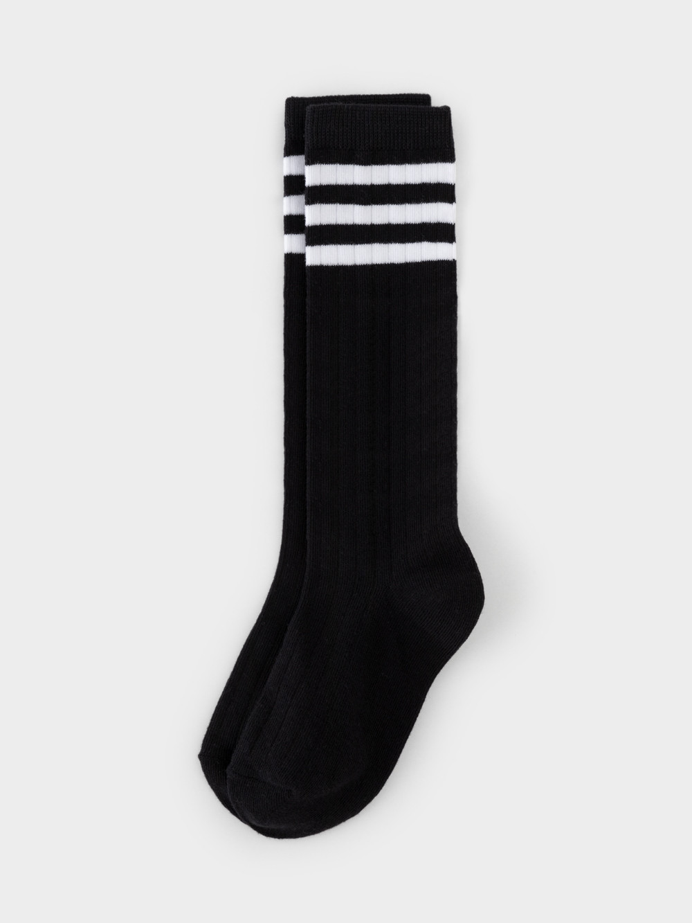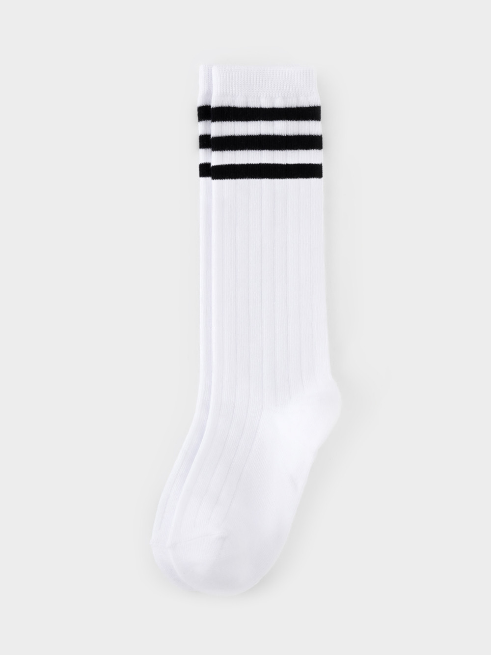 Гольфы для девочки с эластичной резинкой по верхнему краю. Украшены рисунком в полоску. В комплекте 2 пары.