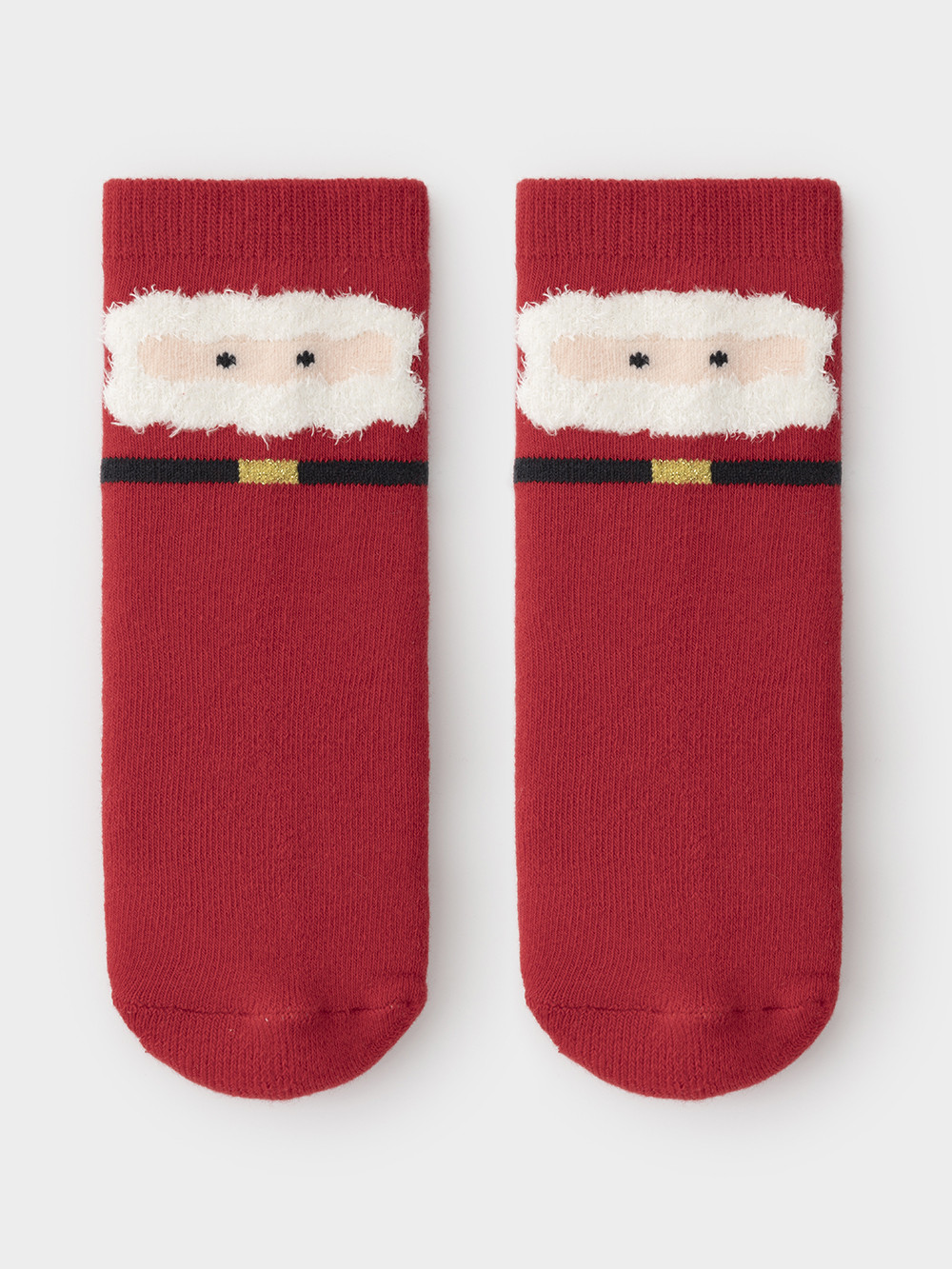 Тёплые махровые носки с формованной пяткой и эластичной резинкой по краю. Украшены рисунком. Отлично подойдут для создания праздничных образов или как дополнение к подарку на Новый год и Рождество. Изделие сохраняет форму и стойкий цвет после многочисленных стирок.