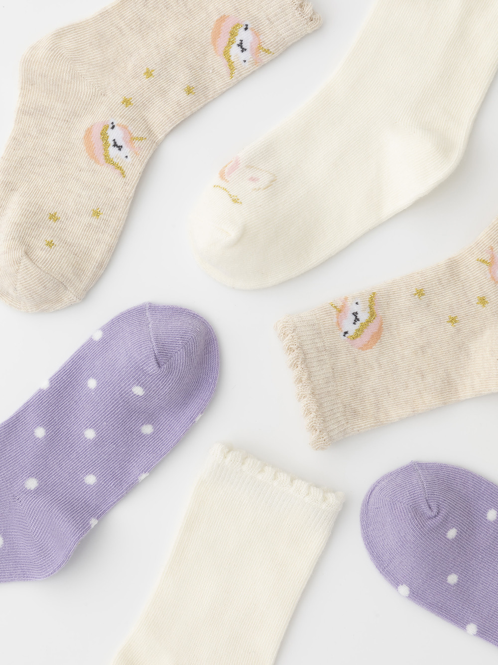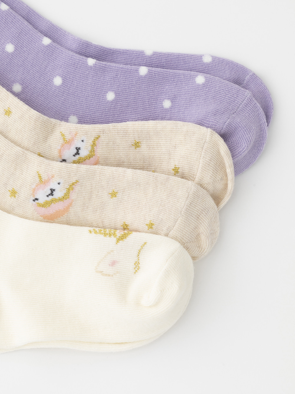 Носки с формованной пяткой и эластичной резинкой по краю. Украшены рисунком и объёмными элементами. В комплекте 3 пары. Изделия сохраняют форму и стойкий цвет после многочисленных стирок.