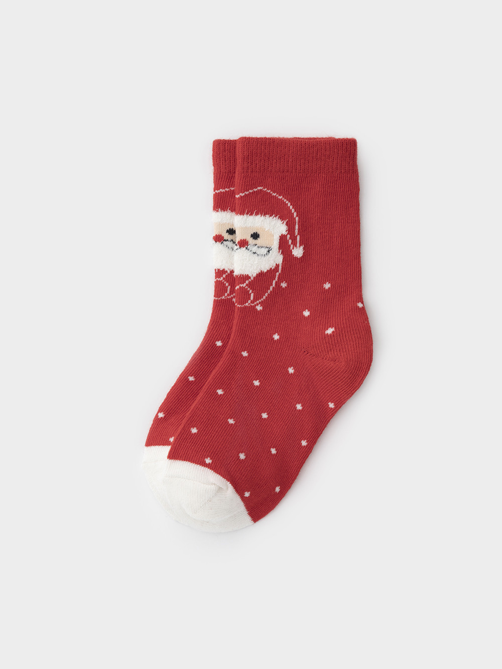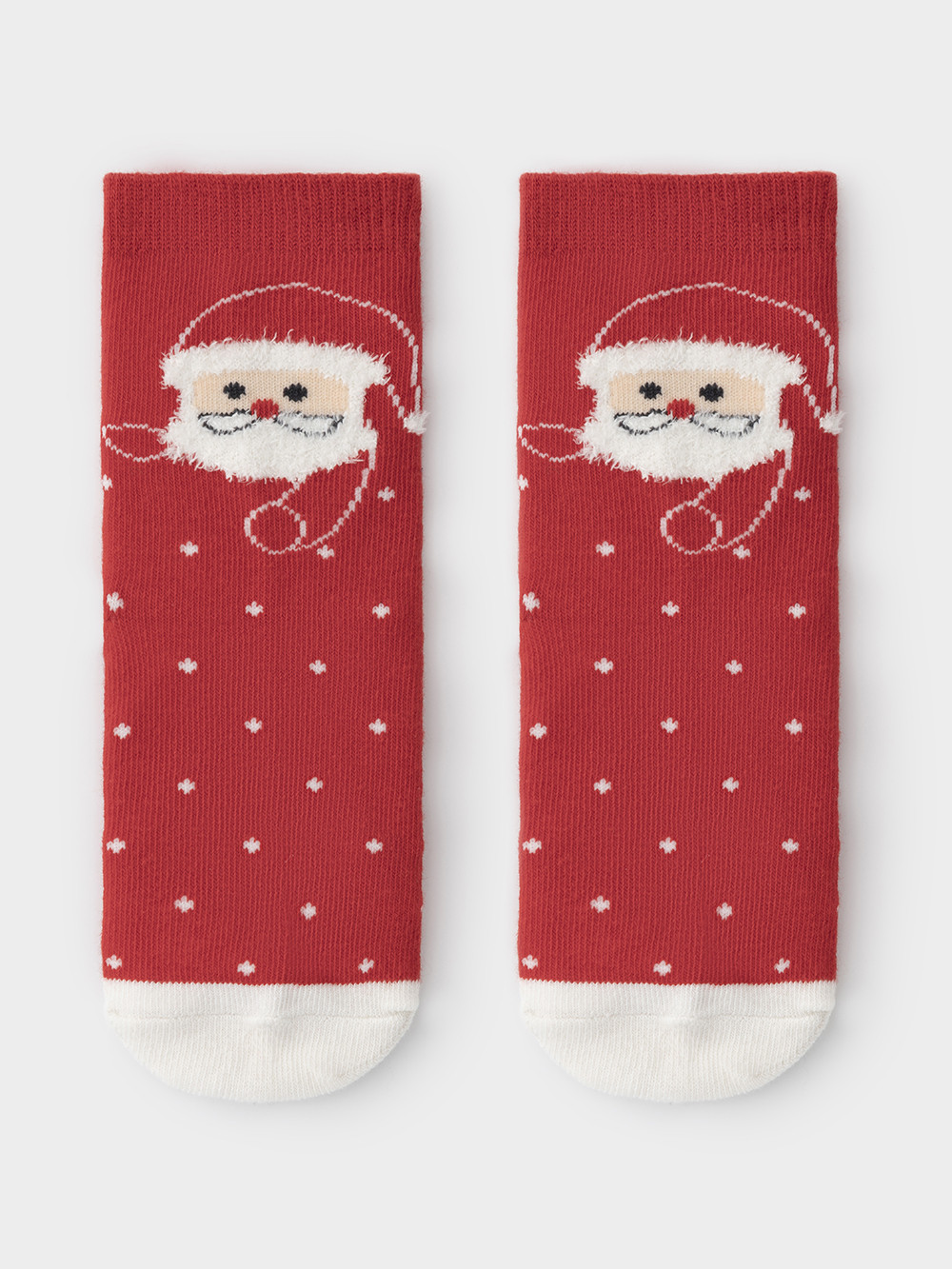 Носки длинные для девочки с формованной пяткой и эластичной резинкой по краю. Украшены рисунком. Отлично подойдут для создания праздничных образов или как дополнение к подарку на Новый год и Рождество. Изделие сохраняет форму и стойкий цвет после многочисленных стирок.