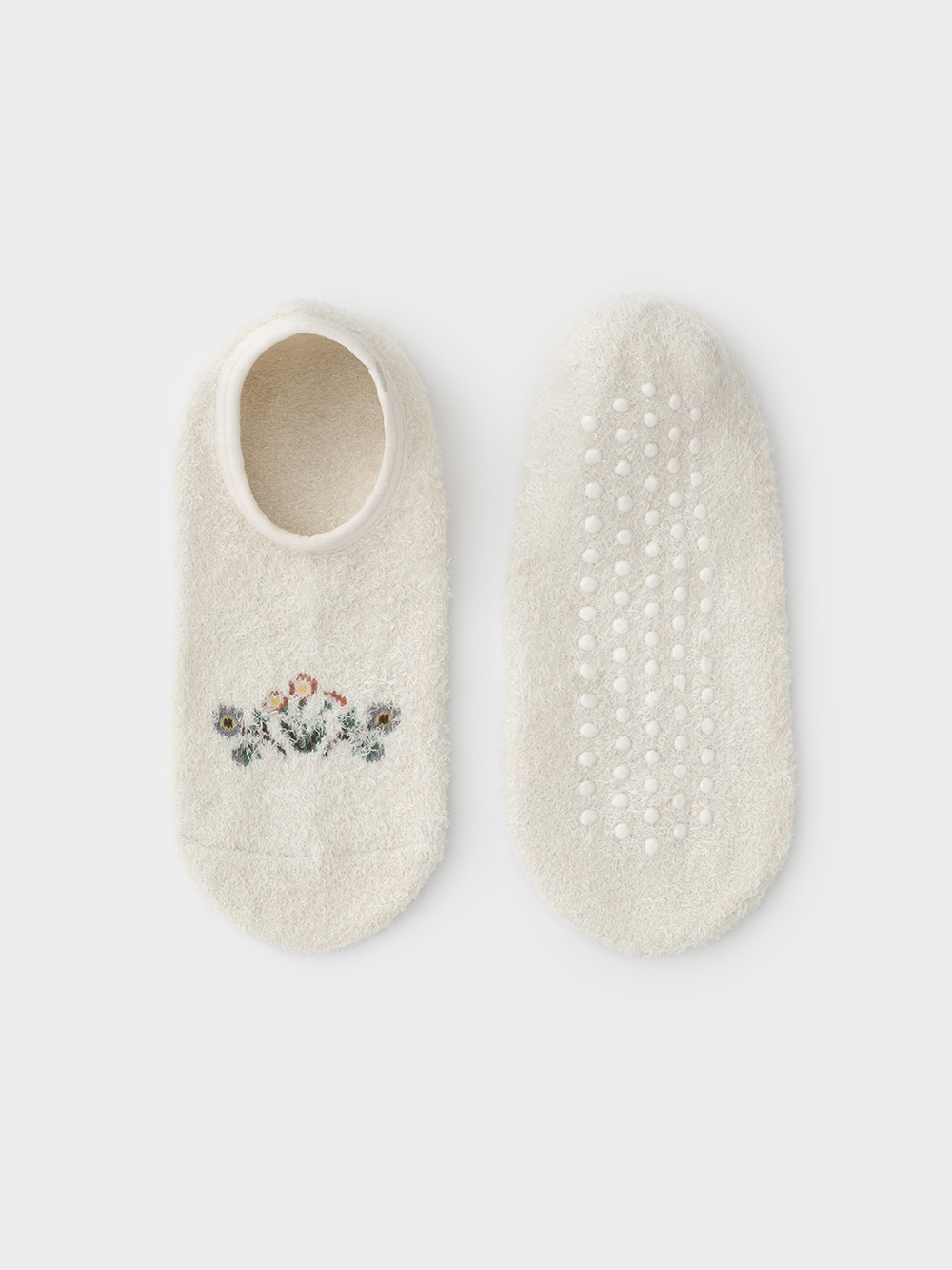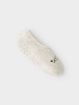 Тёплые следки для девочки с формованной пяткой и эластичной резинкой по краю. На подошве резиновые стопперы. Украшены вышивкой. Изделие сохраняет форму и стойкий цвет после многочисленных стирок.
