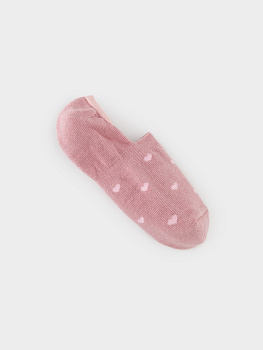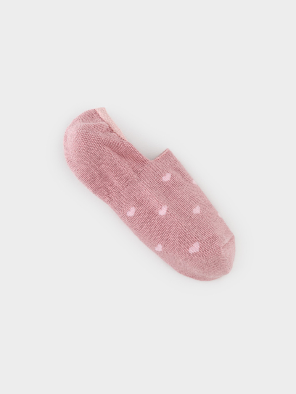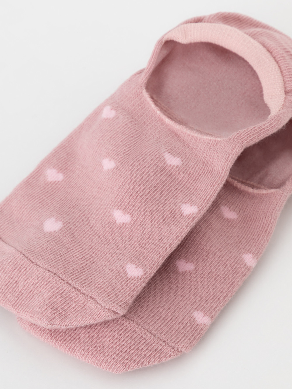 Короткие носки-следки для девочки. Эластичная резинка по краю. Украшены рисунком в сердечко.