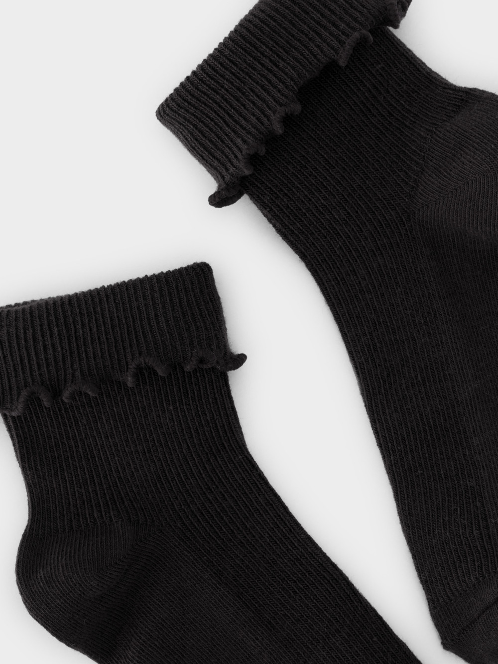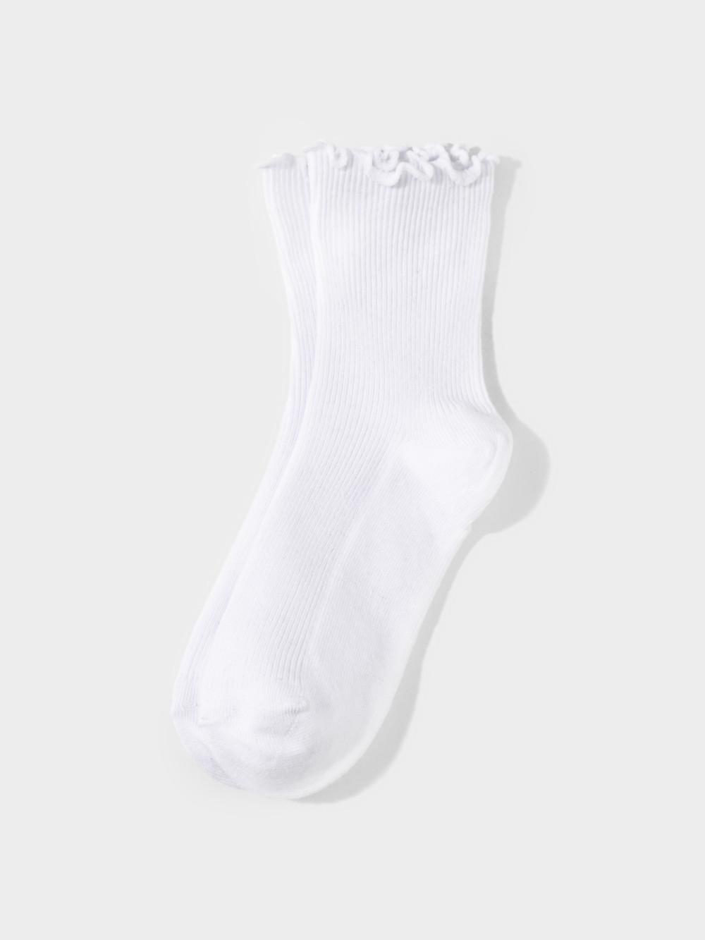 Комплект однотонных длинных носков с рюшей по краю верха для девочки. В комплекте 3 пары.
