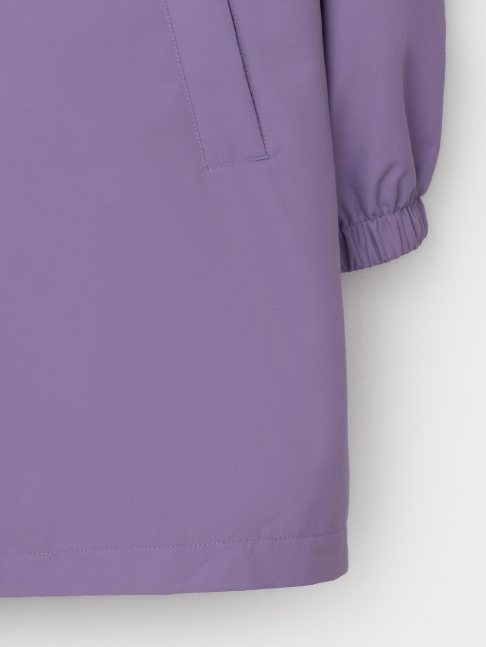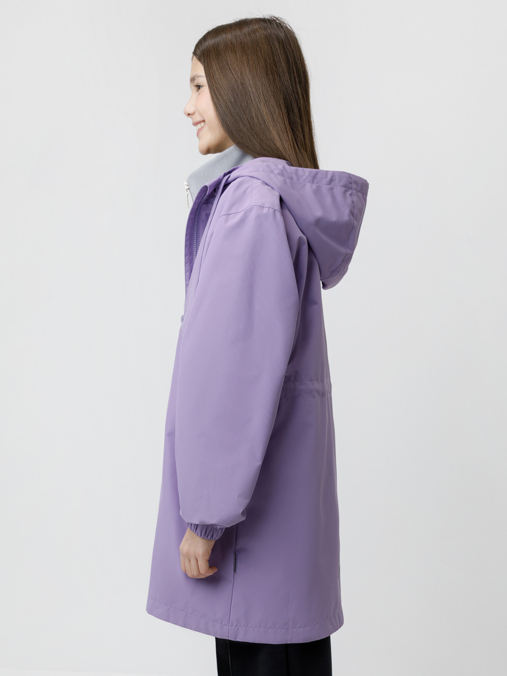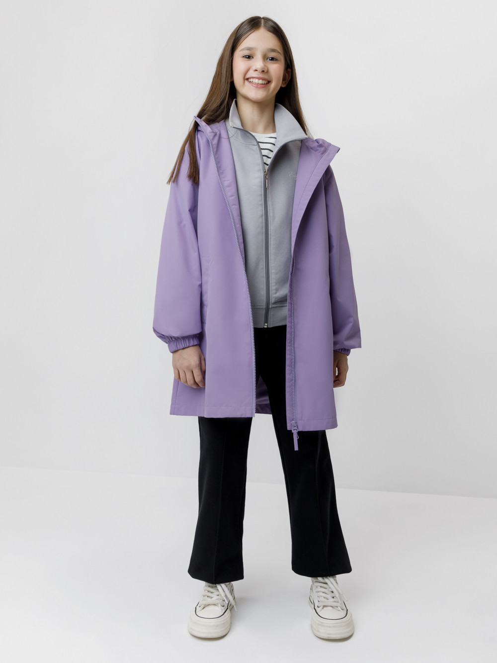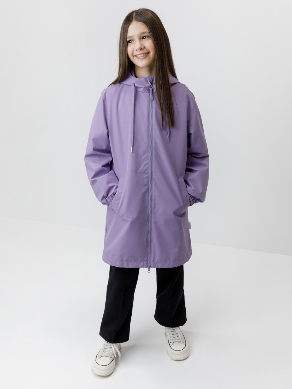 Плащ для девочки из мембранной ткани с дополнительной тефлоновой обработкой. Верхняя мембранная ткань 1000/1000 с тефлоновым покрытием отталкивает воду и грязь и обладает «дышащими» свойствами. Подкладка выполнена из сетки. У изделия предусмотрена защита подбородка. Несъёмный капюшон регулируется с помощью шнурка. Низ рукавов имеет эластичную резинку для лучшего прилегания. Внутри изделие регулируется по талии с помощью эластичного шнурка со стопперами. По бокам два кармана. Во всех изделиях верхнего ассортимента для безопасности ребёнка предусмотрены светоотражающие элементы.
