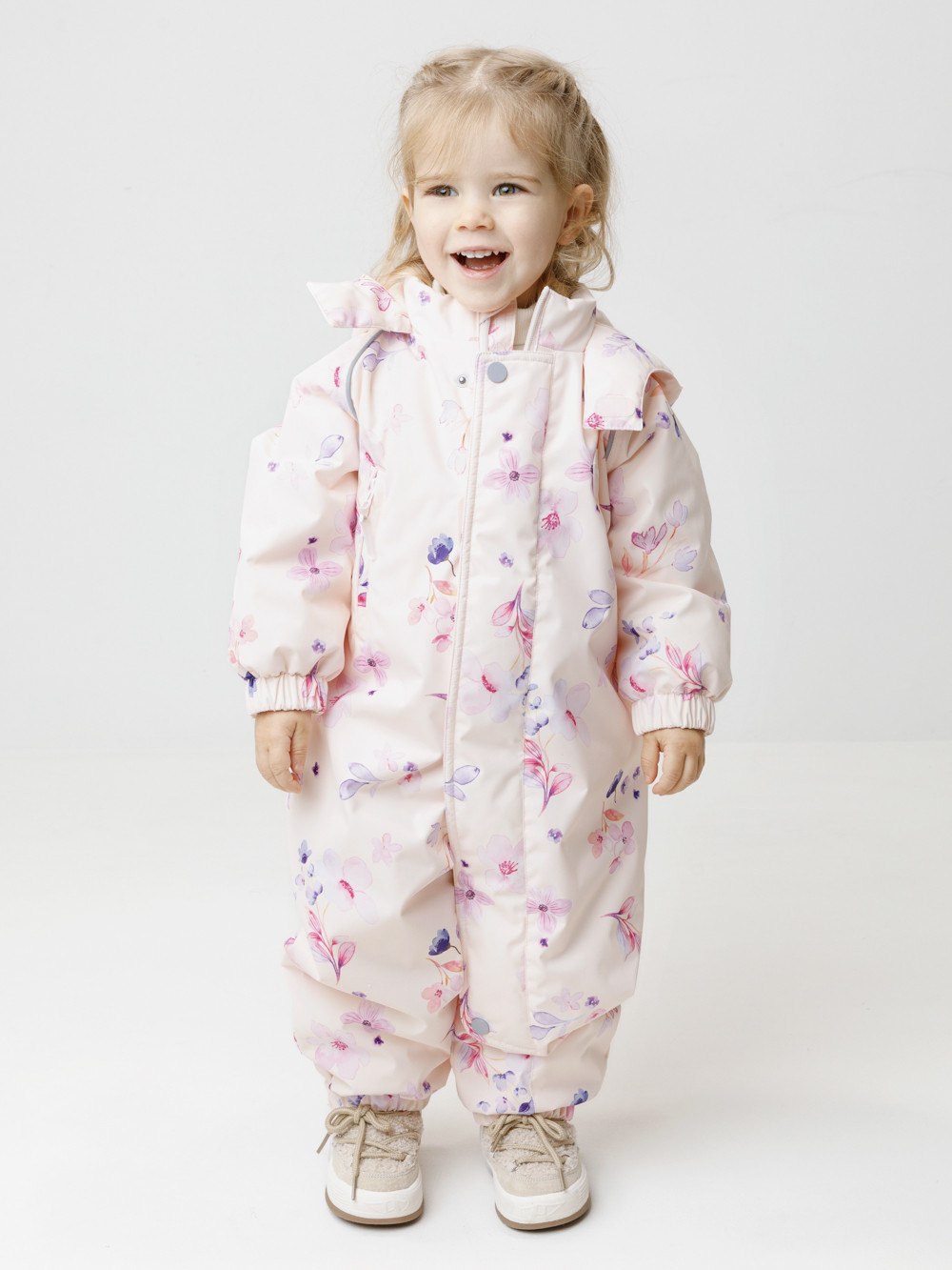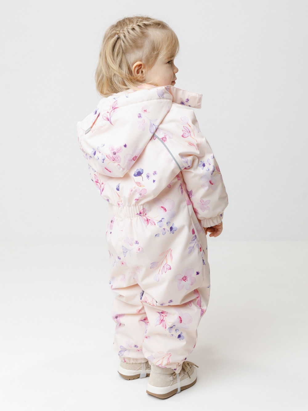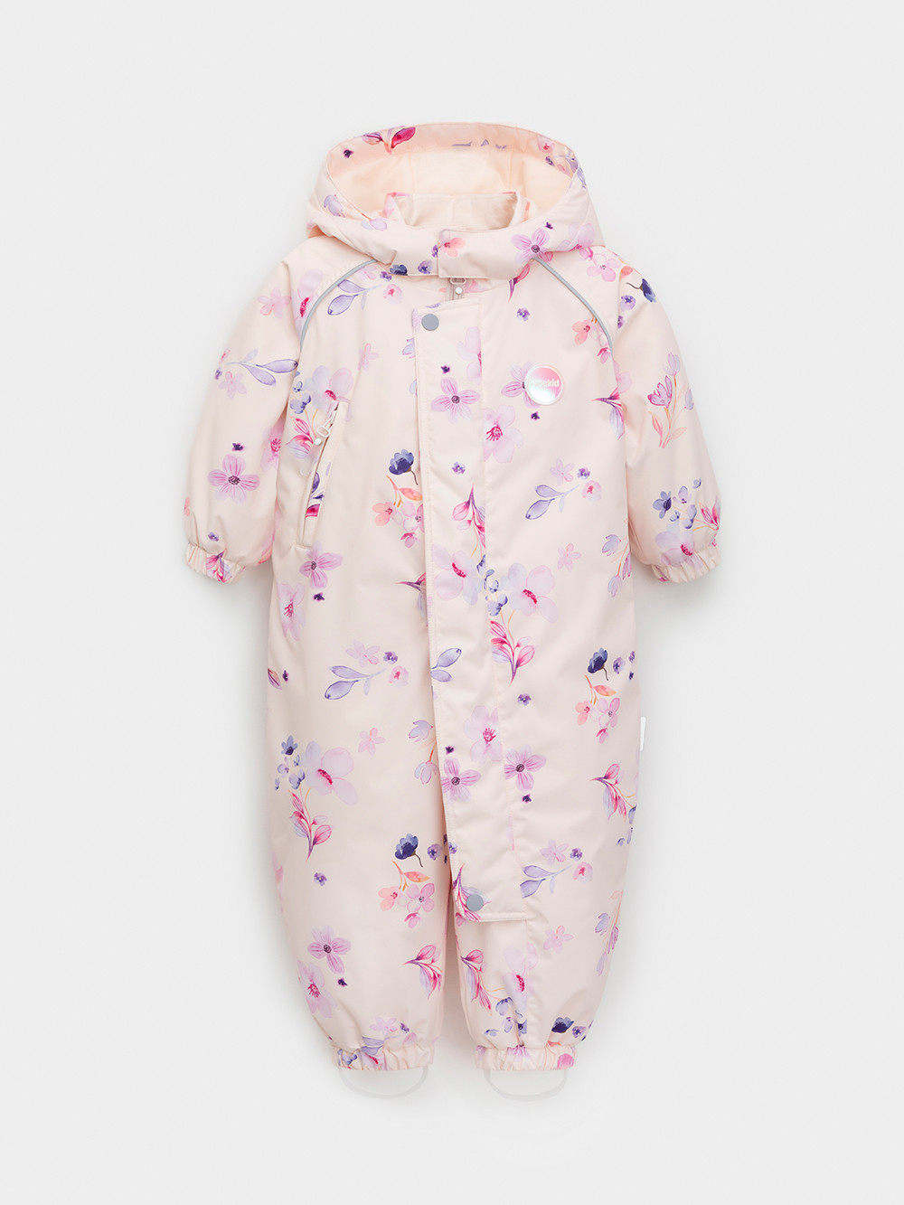 Демисезонный комбинезон ясельный с утеплителем Fellex®, 120 г/м2. Выполнен из мембранной ткани с дополнительной тефлоновой обработкой. Данный вид обработки предохраняет изделие от загрязнения и лучше отводит влагу. Подклад из 100% хлопка. Для удобного одевания комбинезон застёгивается на удлинённую молнию с защитой подбородка. Ветрозащитная планка фиксируется на липучках и кнопках. Утяжка на капюшоне с потайным стоппером. По низу рукавов и брючин, а также на спинке изделия предусмотрены эластичные резинки для лучшего прилегания. Для фиксации комбинезона используются съёмные силиконовые штрипки. В размере 74-80 есть функциональные отвороты на рукавах и брючинах. Во всех изделиях верхнего ассортимента для безопасности ребёнка предусмотрены светоотражающие элементы.
