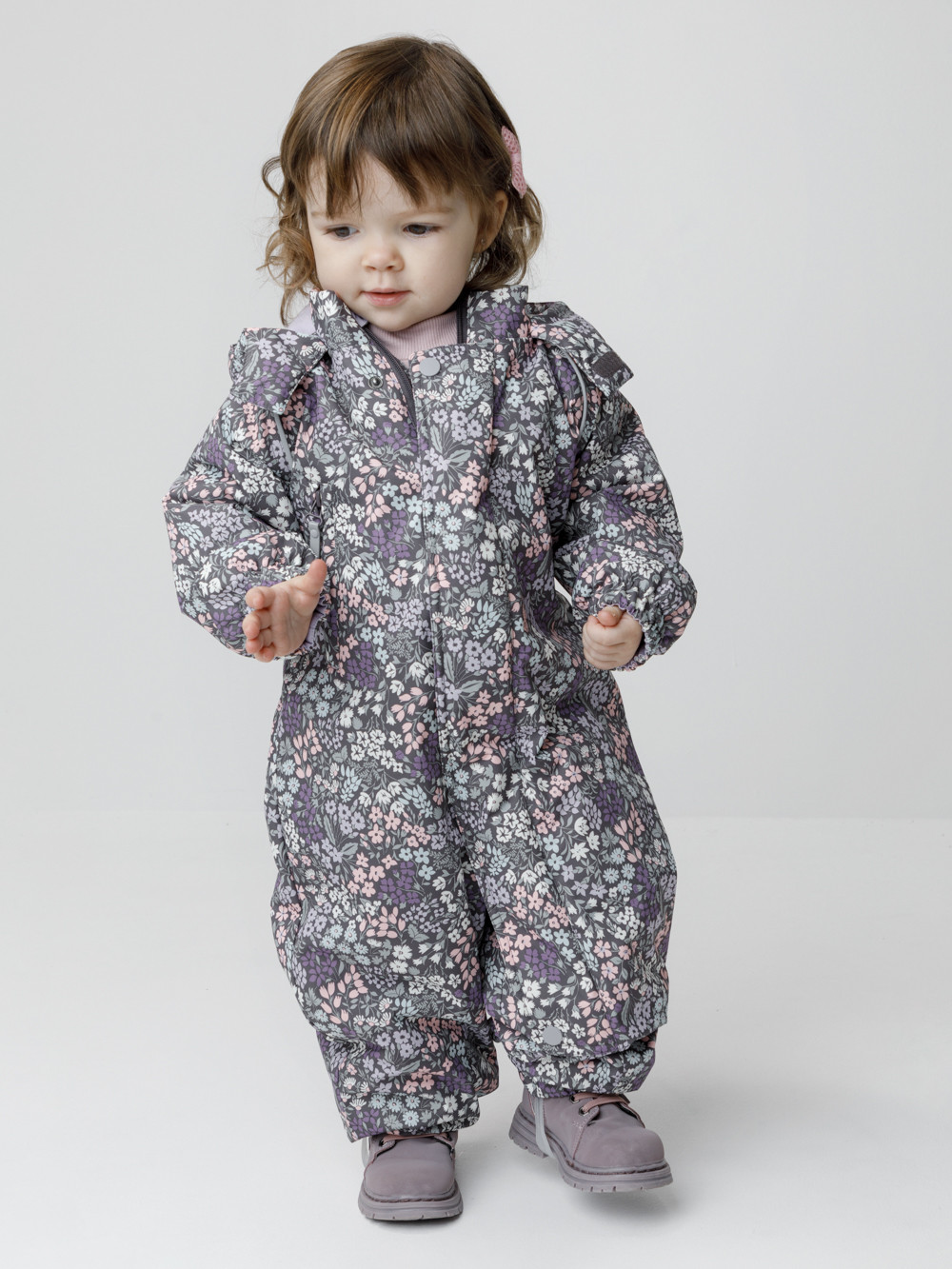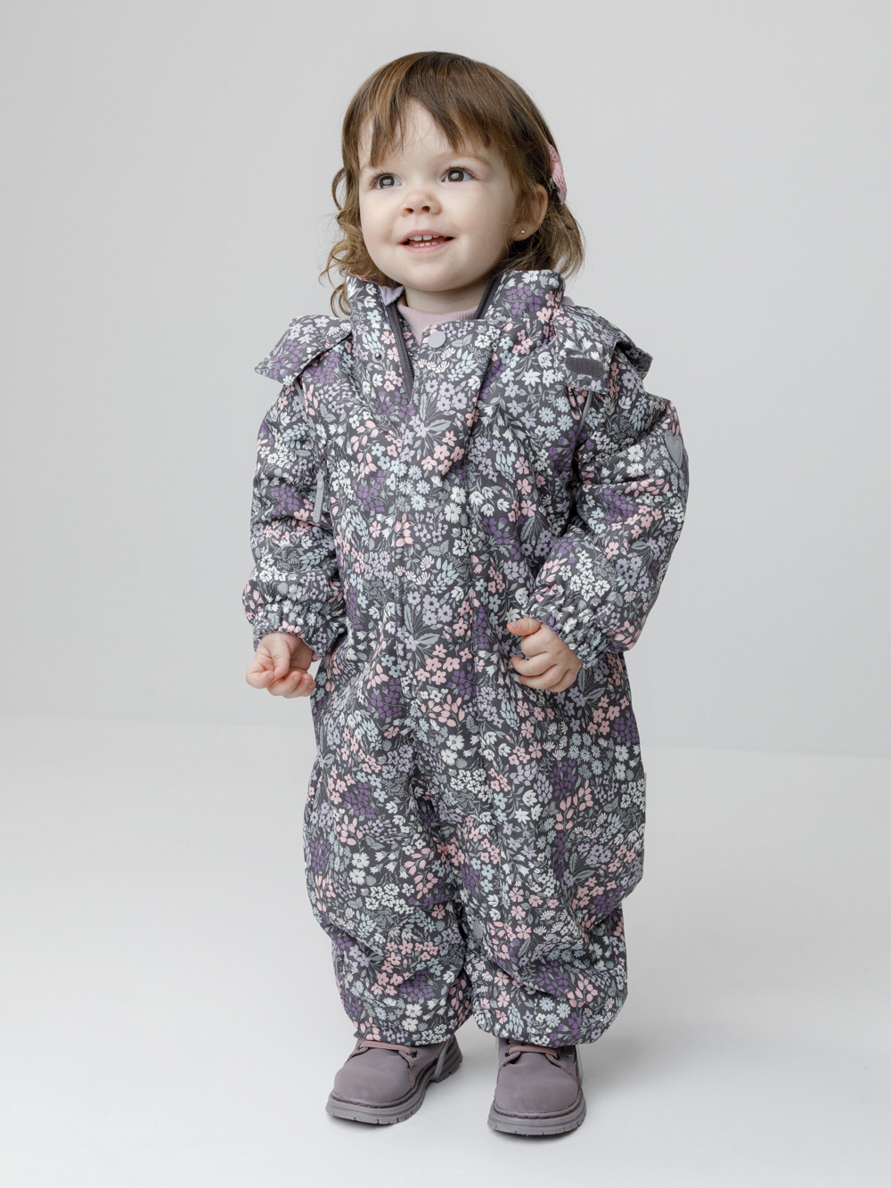 Демисезонный комбинезон ясельный с утеплителем Fellex®, 120 г/м2. Выполнен из мембранной ткани с дополнительной тефлоновой обработкой. Данный вид обработки предохраняет изделие от загрязнения и лучше отводит влагу. Подклад из 100% хлопка. Для удобного одевания комбинезон застёгивается на удлинённую молнию с защитой подбородка. Ветрозащитная планка фиксируется на липучках и кнопках. Утяжка на капюшоне с потайным стоппером. По низу рукавов и брючин, а также на спинке изделия предусмотрены эластичные резинки для лучшего прилегания. Для фиксации комбинезона используются съёмные силиконовые штрипки. В размере 74-80 есть функциональные отвороты на рукавах и брючинах. Во всех изделиях верхнего ассортимента для безопасности ребёнка предусмотрены светоотражающие элементы.