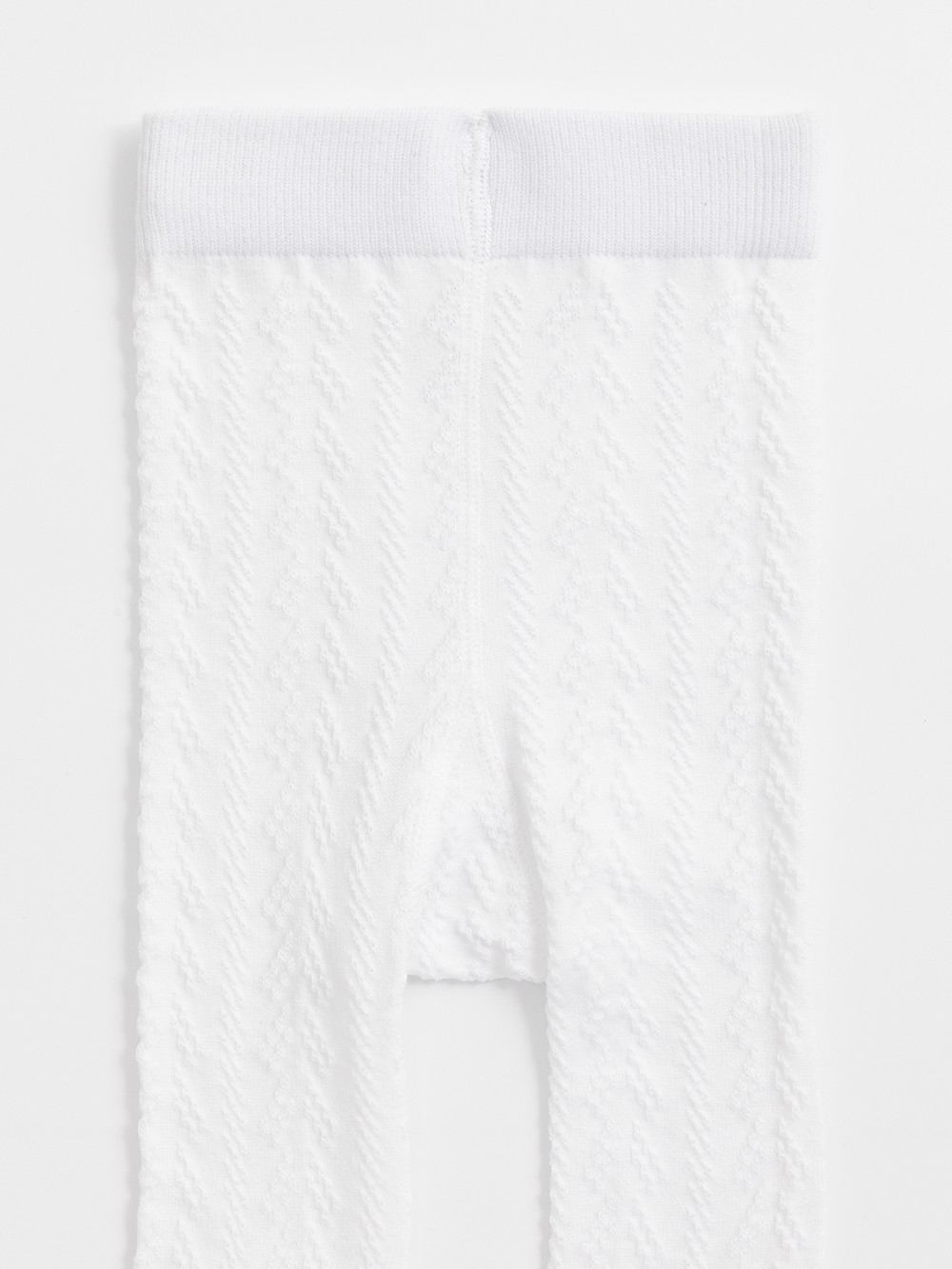 Колготки детские однотонные с формованной пяткой и эластичной резинкой в поясе. Связаны ажурным узором.
