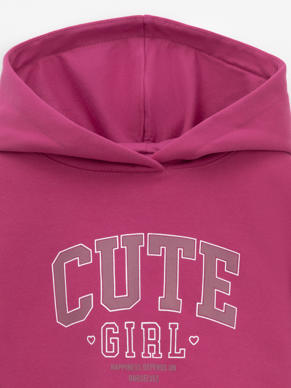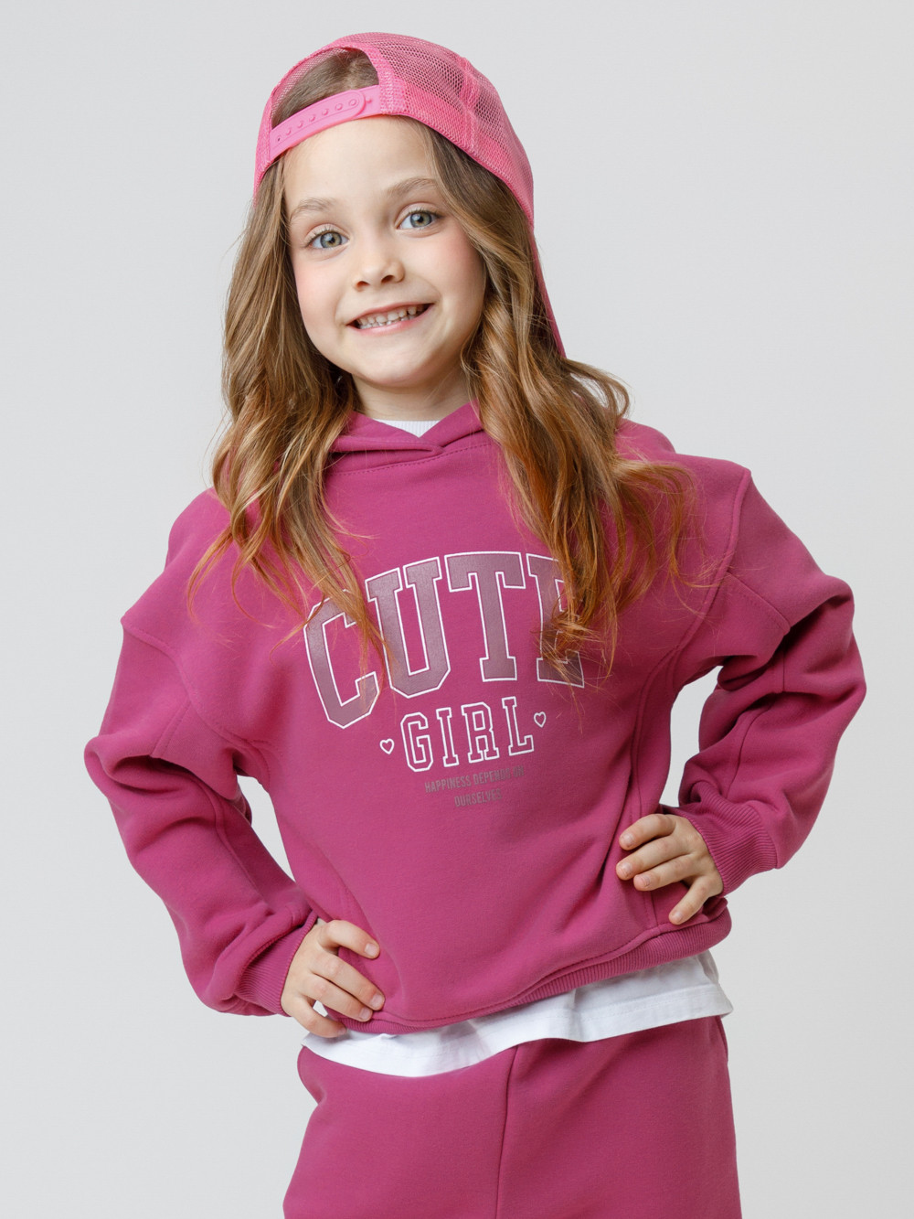 Худи с капюшоном для девочки из тёплого футера с начёсом. Модель оверсайз. Пояс и манжеты выполнены из мягкого эластичного трикотажа. Худи сохраняет форму и стойкий цвет после многочисленных стирок и идеально подходит на каждый день. Оригинальный принт выполнен из стойких текстильных гипоаллергенных красителей. Все трикотажные полотна производятся в соответствии с нормами швейцарского сертификата ЭкоТекс.