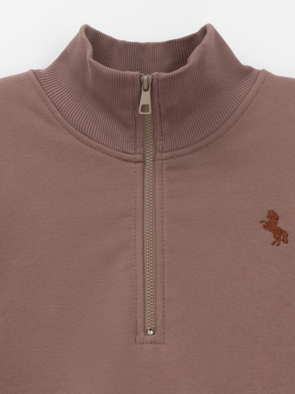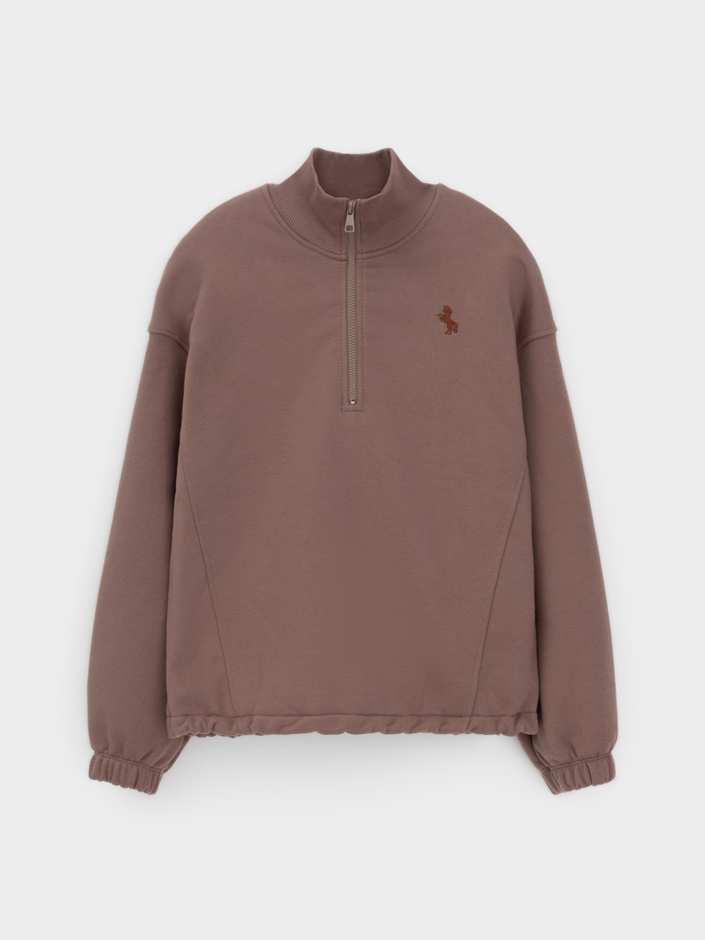 Мягкий свитшот с вышивкой для девочки. Изготовлен из высококачественного футера петли трёхнитки. Спереди застёгивается на короткую металлическую молнию. Воротник выполнен из эластичного полотна в рубчик. Рукава со спущенными плечами и низ изделия собраны на резинку. Свитшот сохраняет форму и стойкий цвет после многочисленных стирок и идеально подходит на каждый день. Все трикотажные полотна производятся в соответствии с нормами швейцарского сертификата ЭкоТекс.
