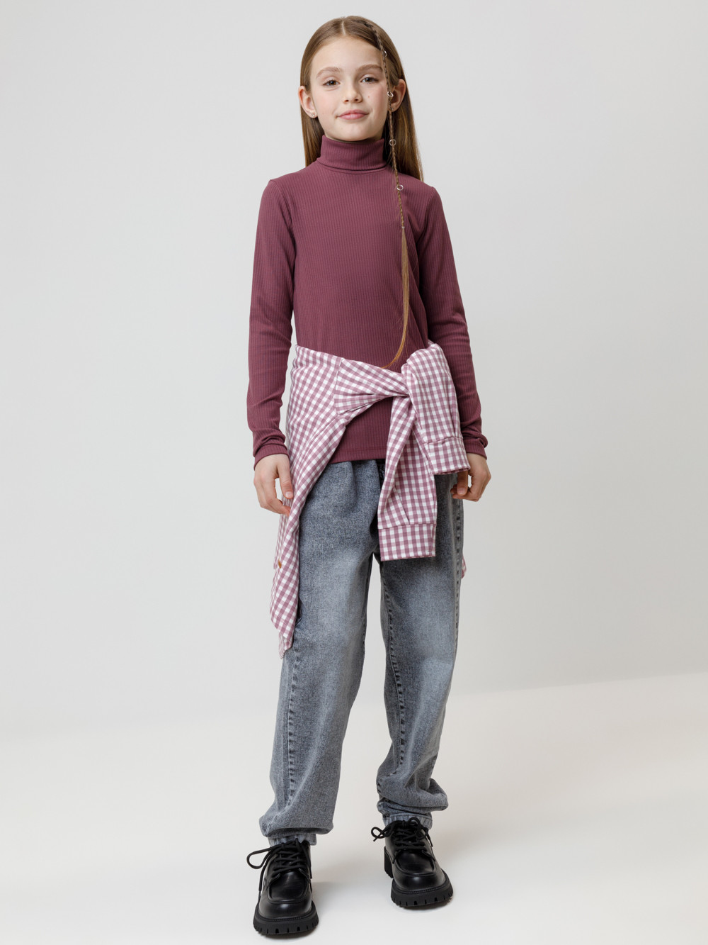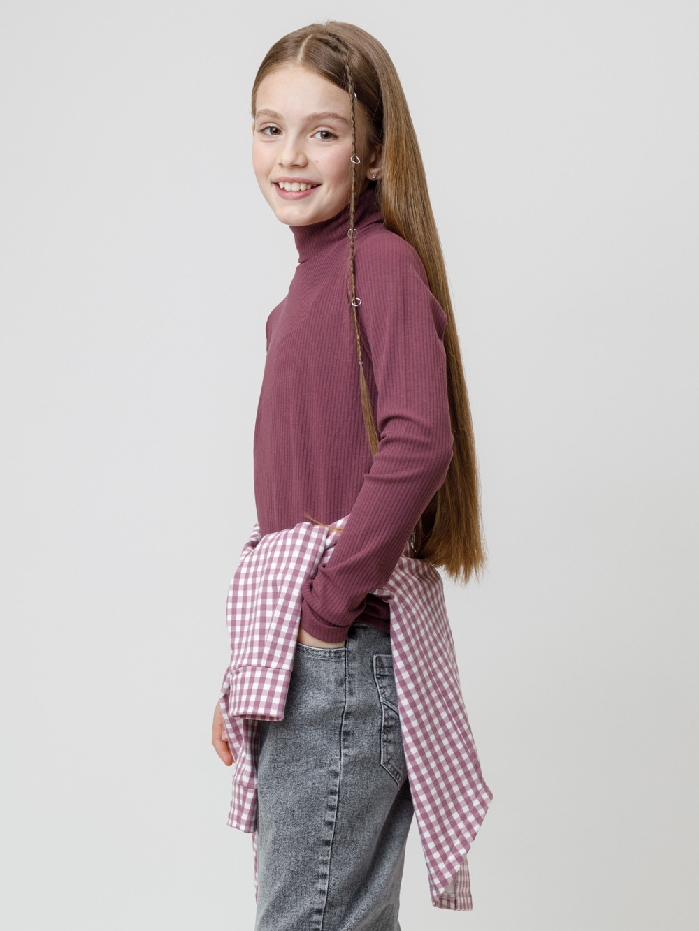 Водолазка для девочки из эластичного трикотажа в рубчик. Изделие сохраняет цвет и форму после многократных стирок и идеально подходит на каждый день. Все трикотажные полотна производятся в соответствии с нормами швейцарского сертификата ЭкоТекс.