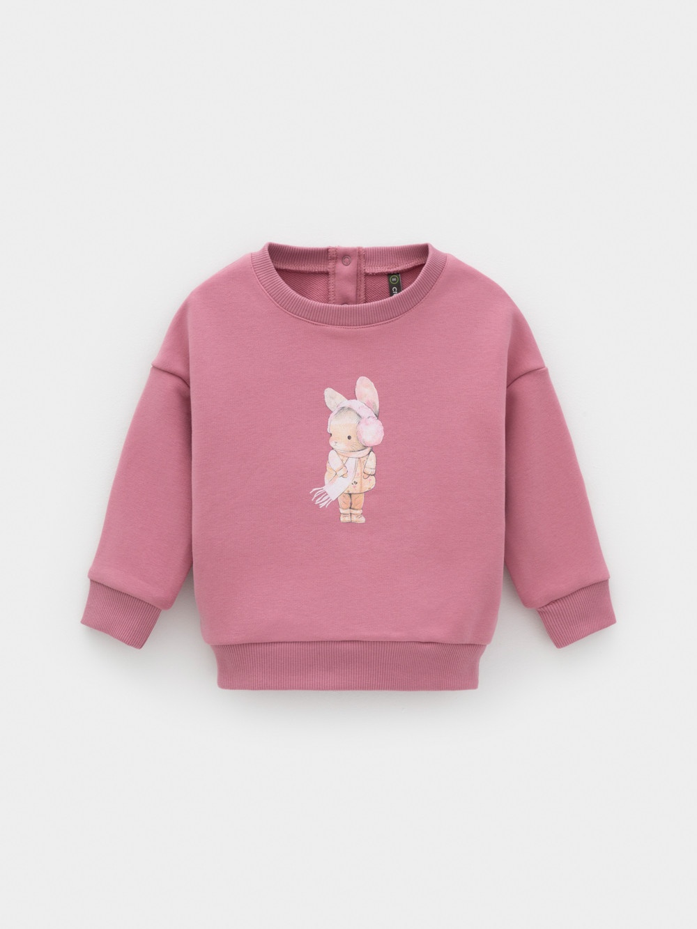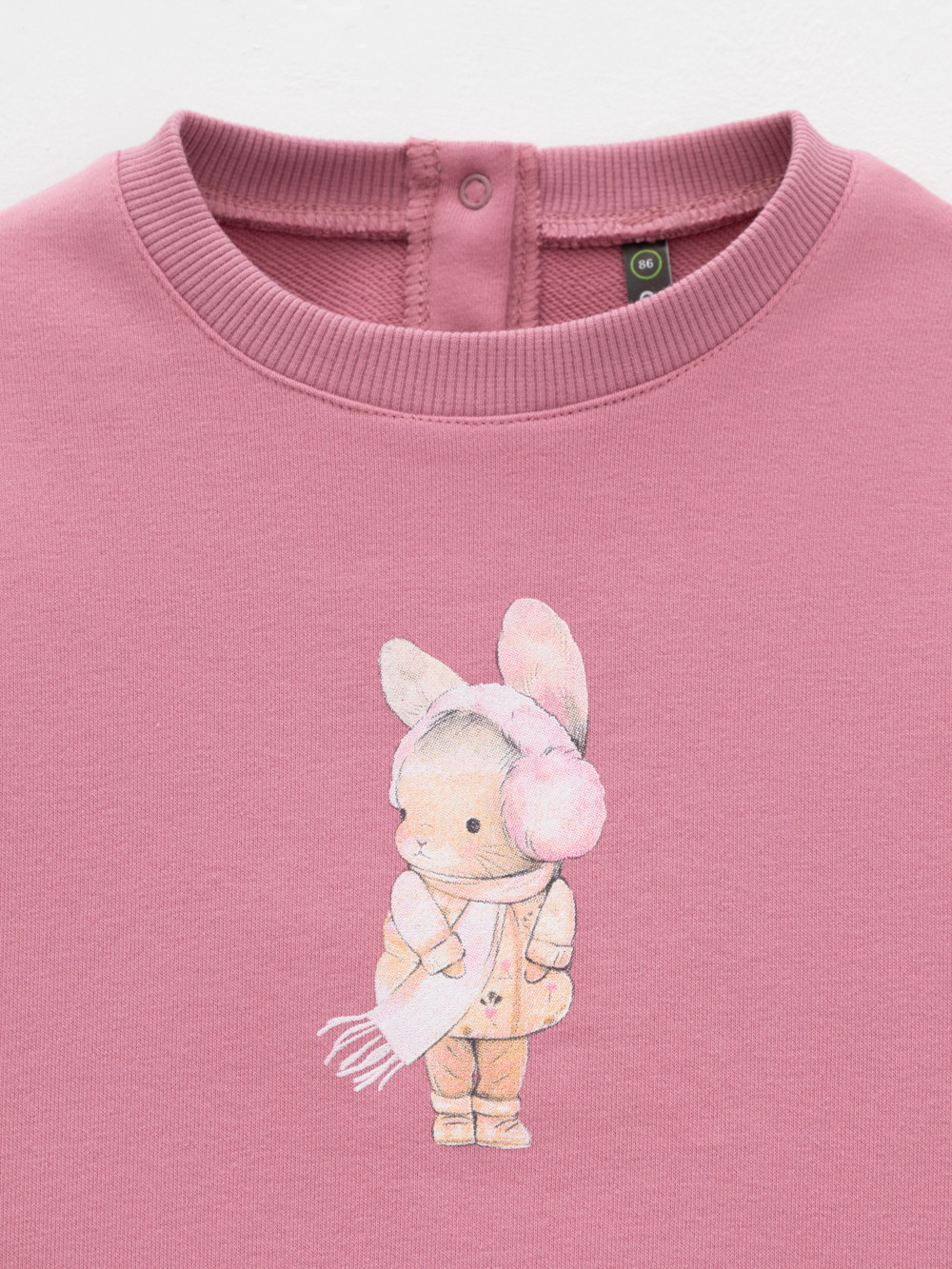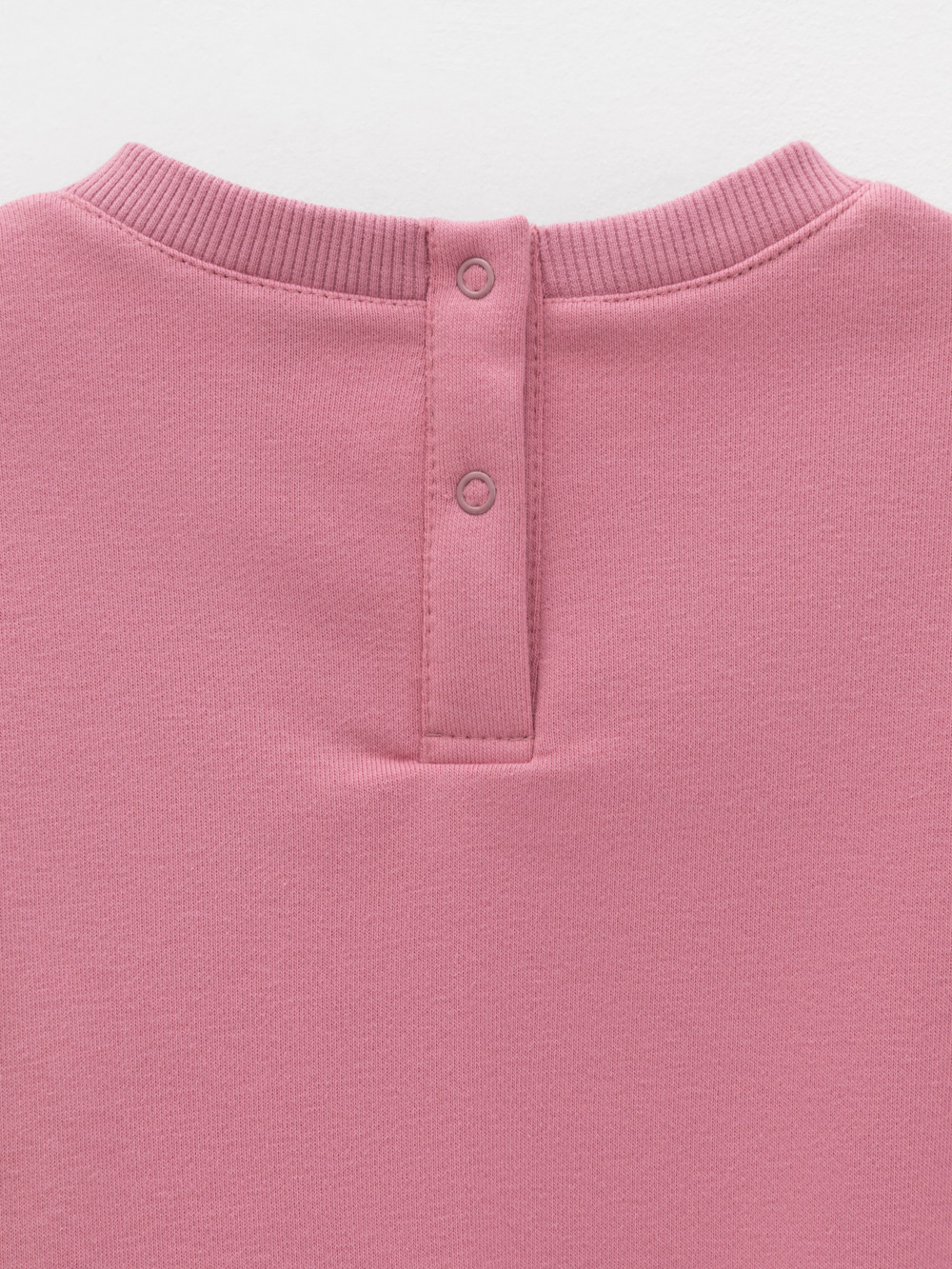 Мягкий свитшот для девочки из высококачественного футера. Обтачка горловины, манжеты и пояс выполнены из эластичного полотна. Для удобства на спинке имеется застёжка на кнопки. Оригинальный принт выполнен из стойких текстильных красителей. Свитшот сохраняет форму и стойкий цвет после многочисленных стирок и идеально подходит на каждый день. Все трикотажные полотна производятся в соответствии с нормами швейцарского сертификата ЭкоТекс.