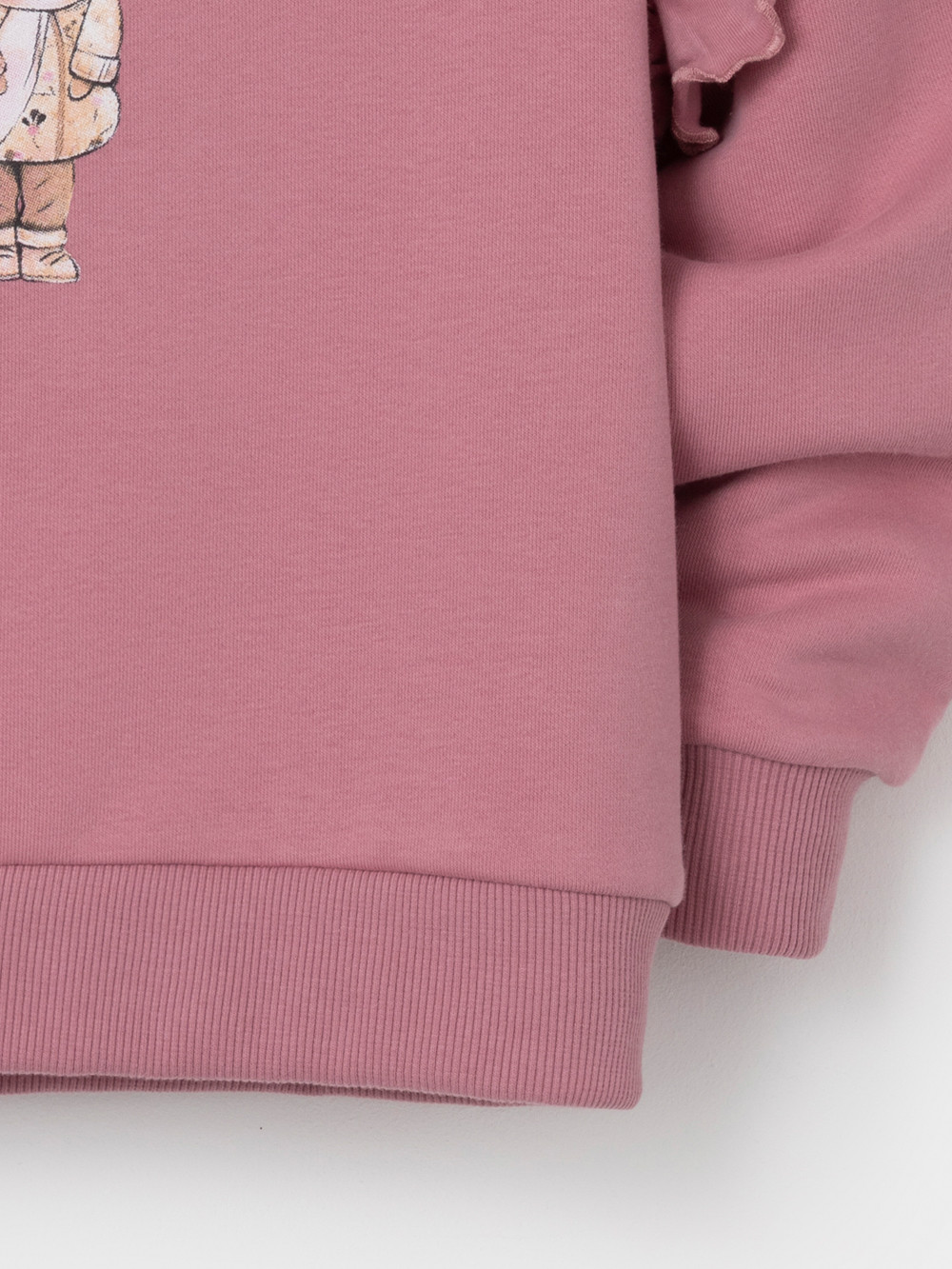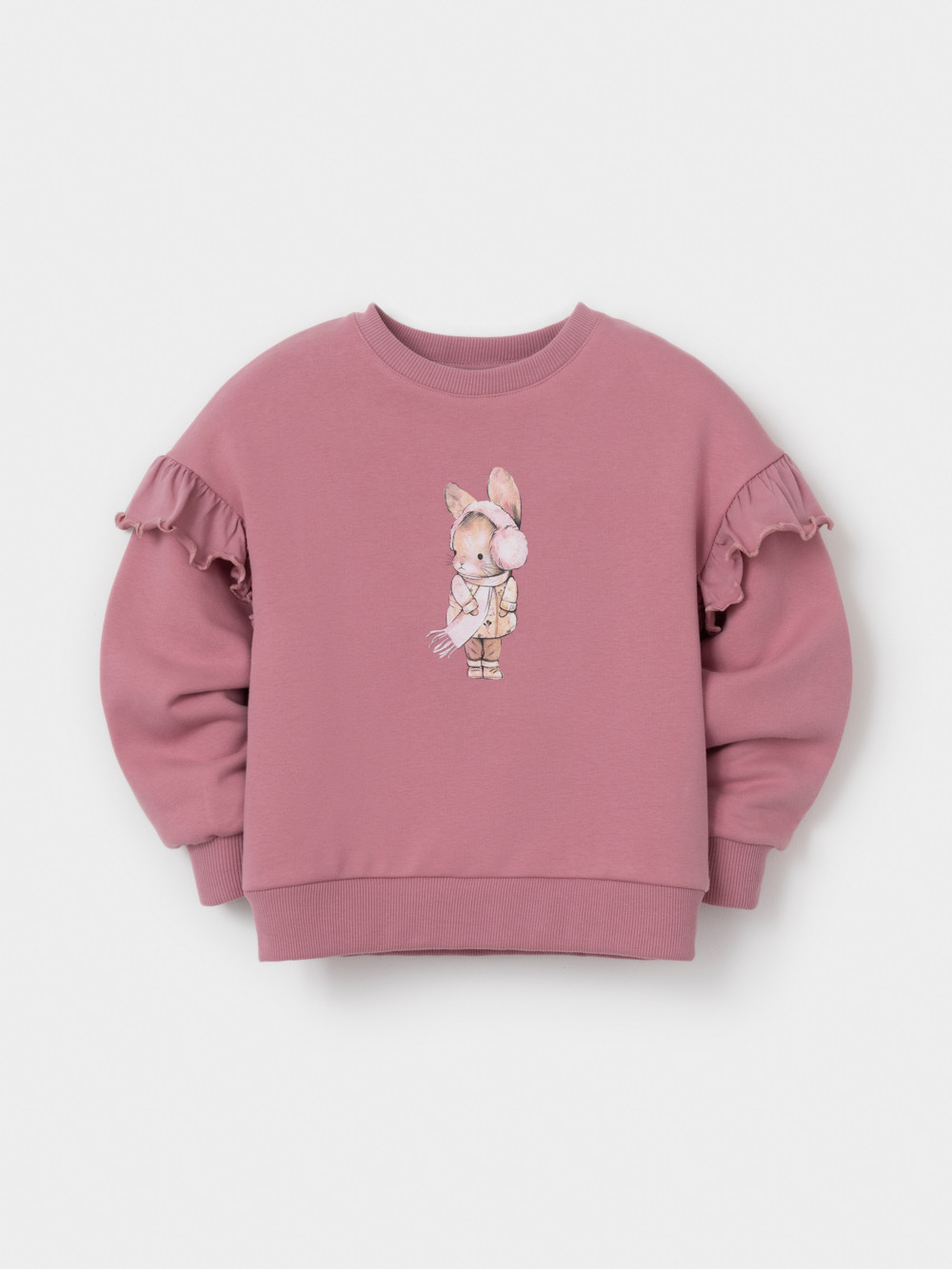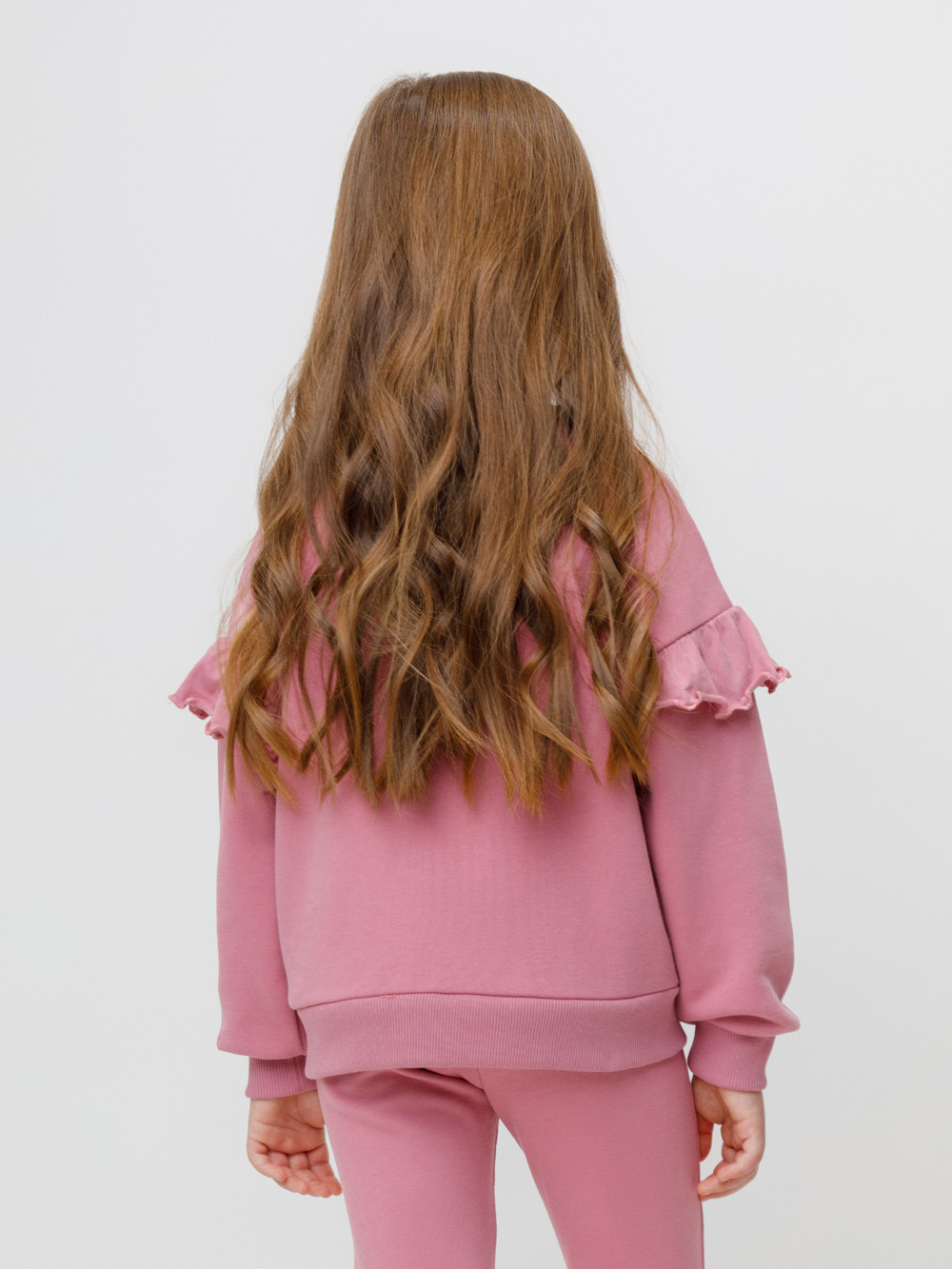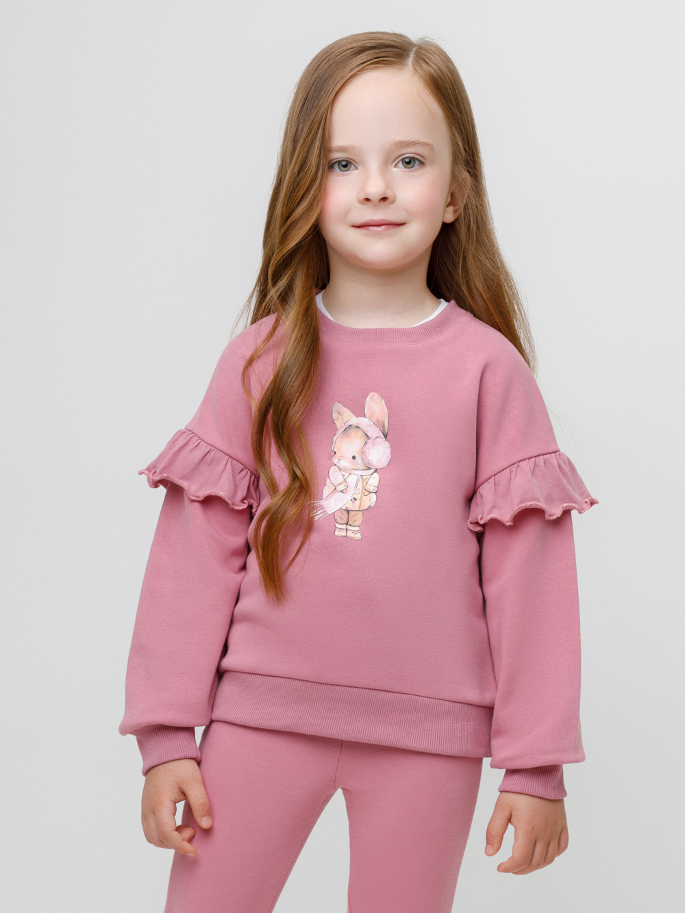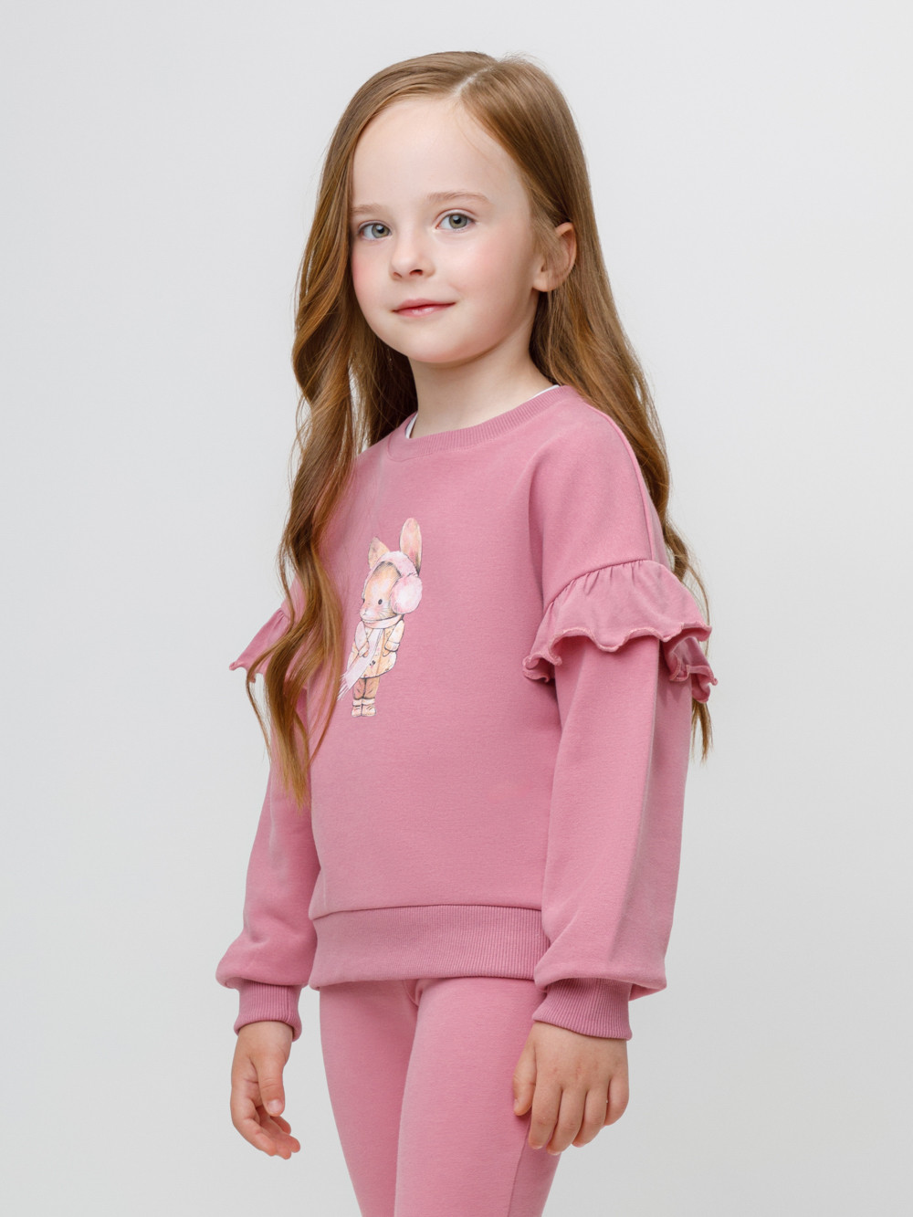 Мягкий свитшот с воздушными воланами для девочки. Изготовлен из высококачественного петельчатого футера со спандексом. Обтачка горловины, манжеты и пояс выполнены из эластичного полотна. Для удобства в размерах 92 и 98 на плече имеется застёжка на кнопки. Оригинальный принт выполнен из стойких текстильных красителей. Свитшот сохраняет форму и стойкий цвет после многочисленных стирок. Все трикотажные полотна производятся в соответствии с нормами швейцарского сертификата ЭкоТекс.