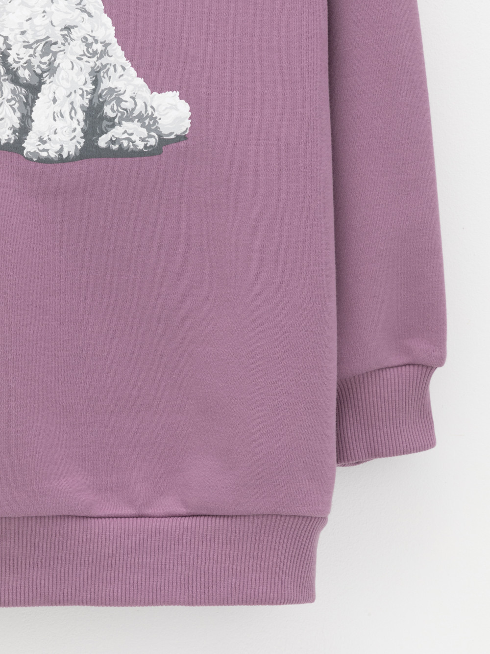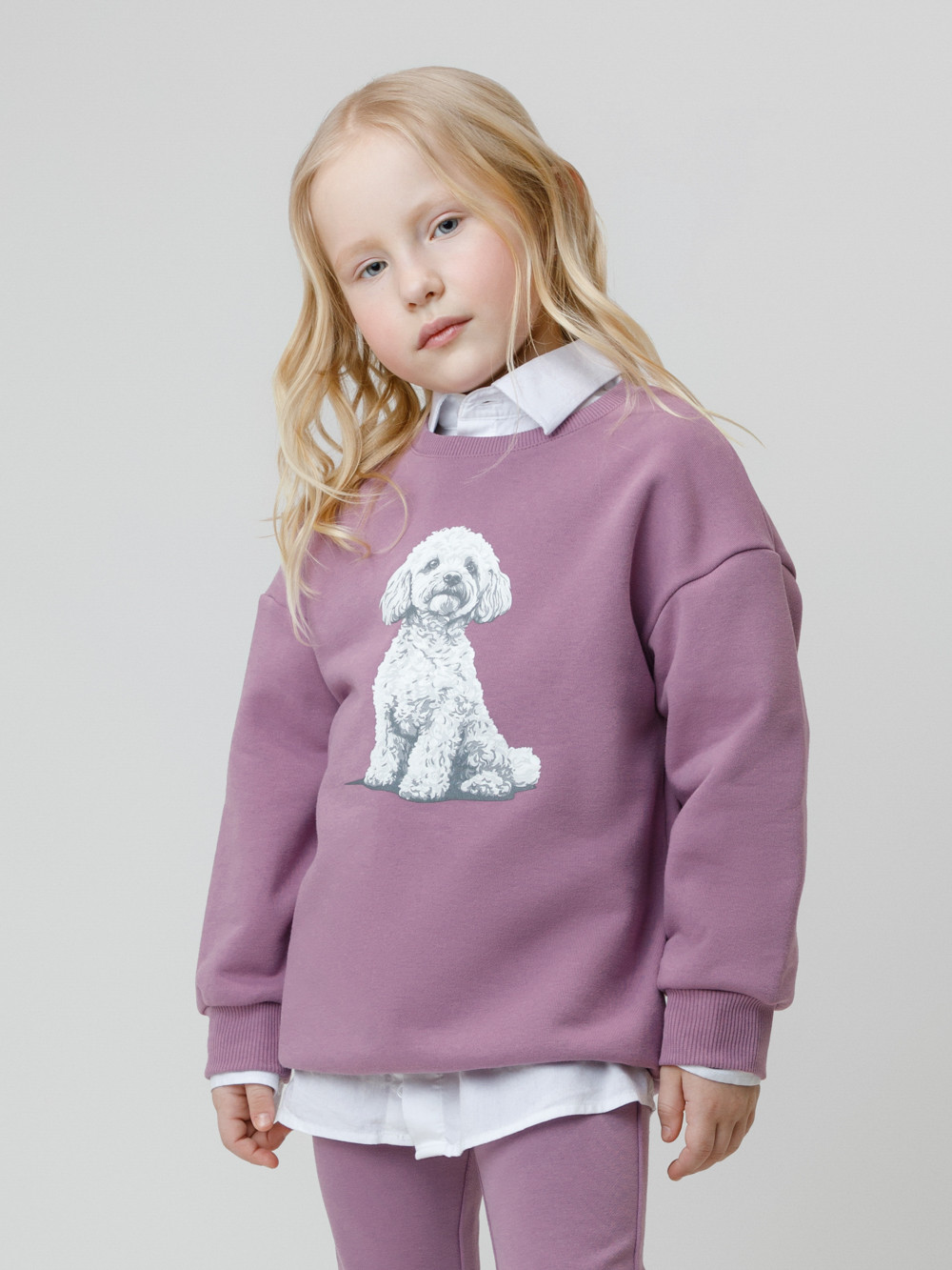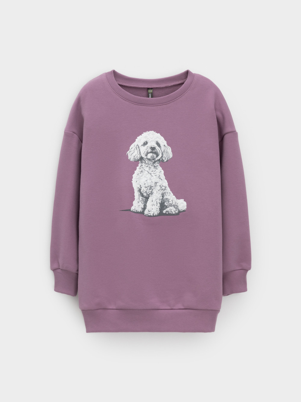 Мягкий удлинённый свитшот для девочки со спущенными рукавами. Изготовлен из высококачественного петельчатого футера трёхнитки. Обтачка горловины, манжеты и пояс выполнены из эластичного полотна. Для удобства в размерах 92 и 98 на спинке имеется застёжка на кнопки. Оригинальный принт выполнен из стойких текстильных красителей. Свитшот сохраняет форму и стойкий цвет после многочисленных стирок и идеально подходит на каждый день. Все трикотажные полотна производятся в соответствии с нормами швейцарского сертификата ЭкоТекс.