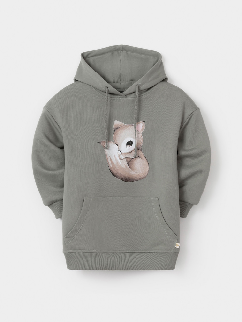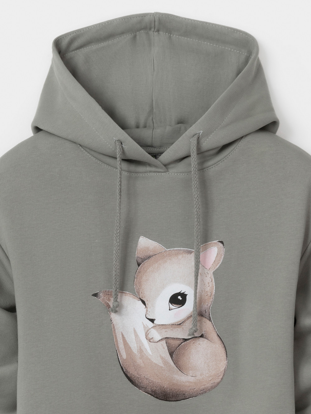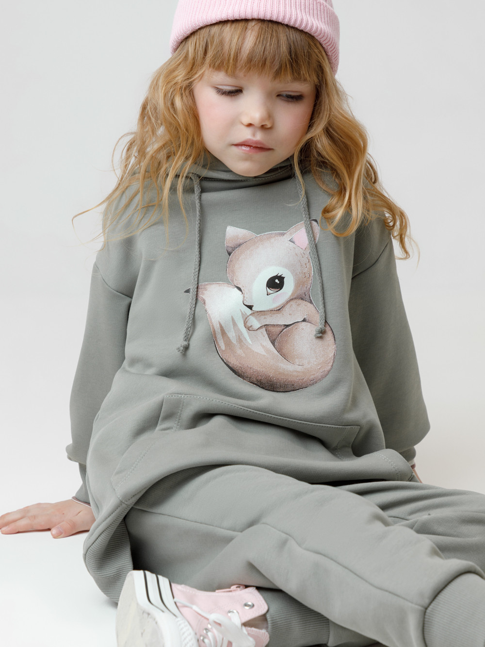 Худи с капюшоном для девочки из мягкого футера трёхнитки с начёсом. Пояс и манжеты выполнены из мягкого эластичного трикотажа. Худи сохраняет форму и стойкий цвет после многочисленных стирок и идеально подходит на каждый день. Оригинальный принт выполнен из стойких текстильных гипоаллергенных красителей. Все трикотажные полотна производятся в соответствии с нормами швейцарского сертификата ЭкоТекс.