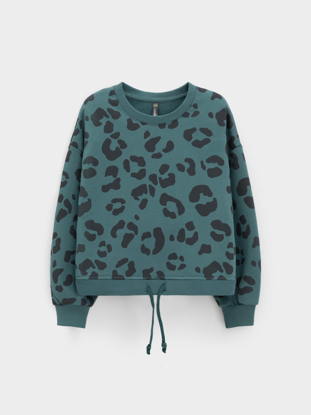 Свитшот для девочки из мягкого петельчатого футера трёхнитки. В составе 80% натурального хлопка и 20% полиэстера, при этом полиэстер ввязан внутрь по особой технологии и не соприкасается с кожей. Застёгивается на кнопки в размерах 92 и 98. Пояс регулируется по ширине с помощью шнурка. На рукавах эластичные манжеты. Оригинальный принт выполнен из стойких текстильных гипоаллергенных красителей. Изделие сохраняет цвет и форму после многократных стирок. Все трикотажные полотна производятся в соответствии с нормами швейцарского сертификата ЭкоТекс.