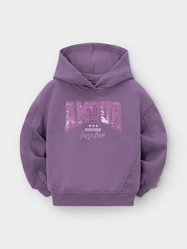 Худи для девочки из мягкого футера с оригинальным рисунком. В составе 80% натурального хлопка и 20% полиэстера, при этом полиэстер ввязан внутрь по особой технологии и не соприкасается с кожей. Манжеты и пояс выполнены из эластичного трикотажа в рубчик. Изделие сохраняет цвет и форму после многократных стирок. Все трикотажные полотна производятся в соответствии с нормами швейцарского сертификата ЭкоТекс.