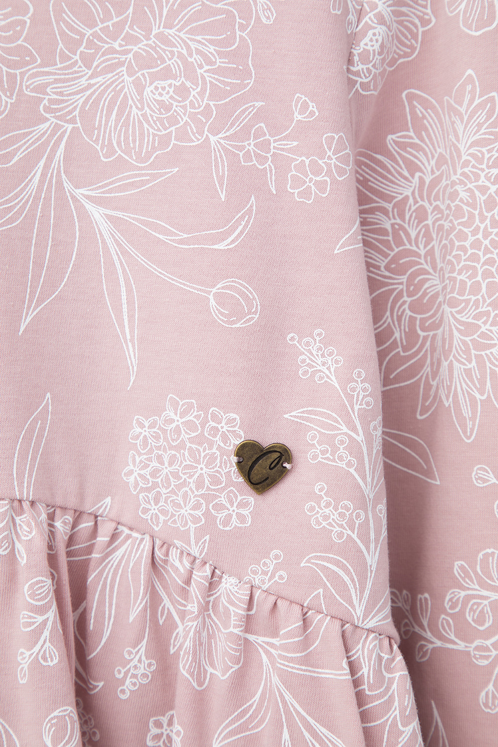 Лёгкое трикотажное платье с длинными рукавами из высококачественного хлопка. Оригинальная набивка выполнена из стойких текстильных гипоаллергенных красителей. Изделие сохраняет цвет и форму после многократных стирок.