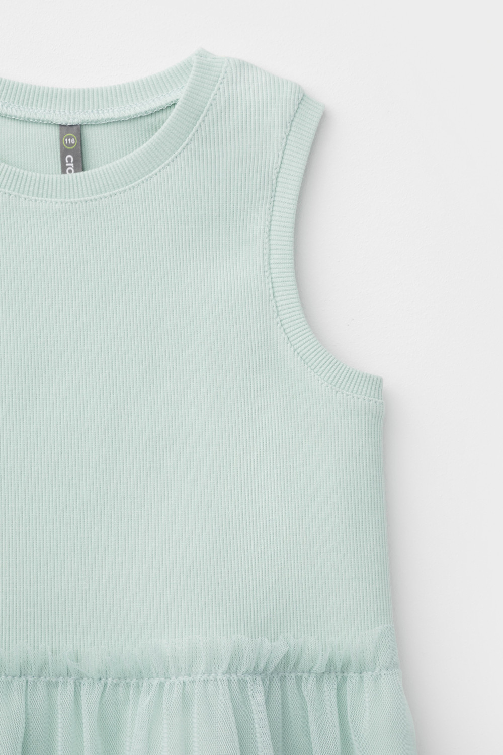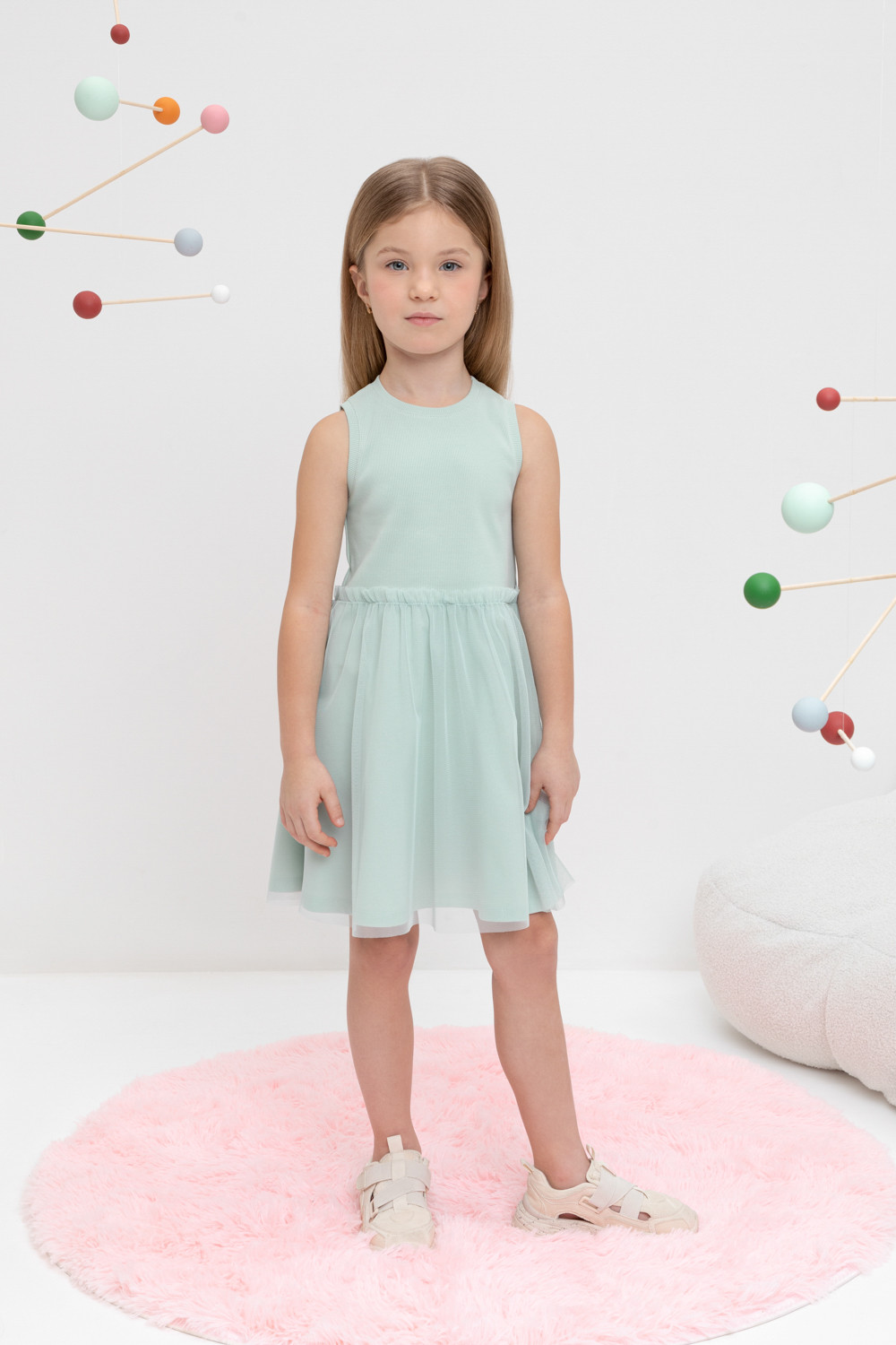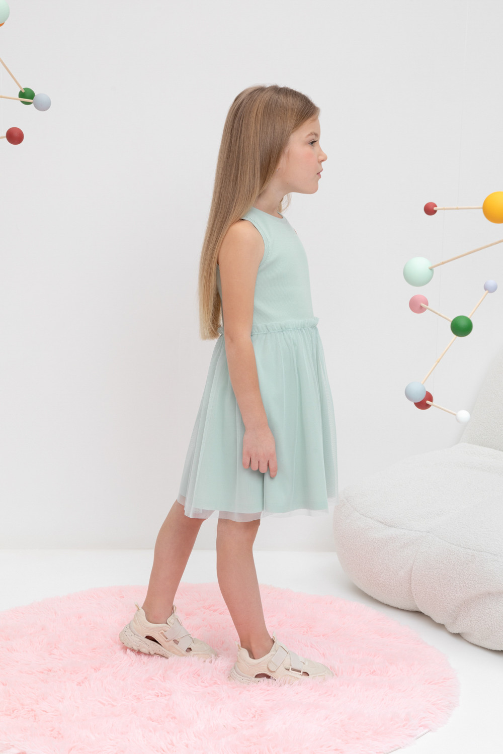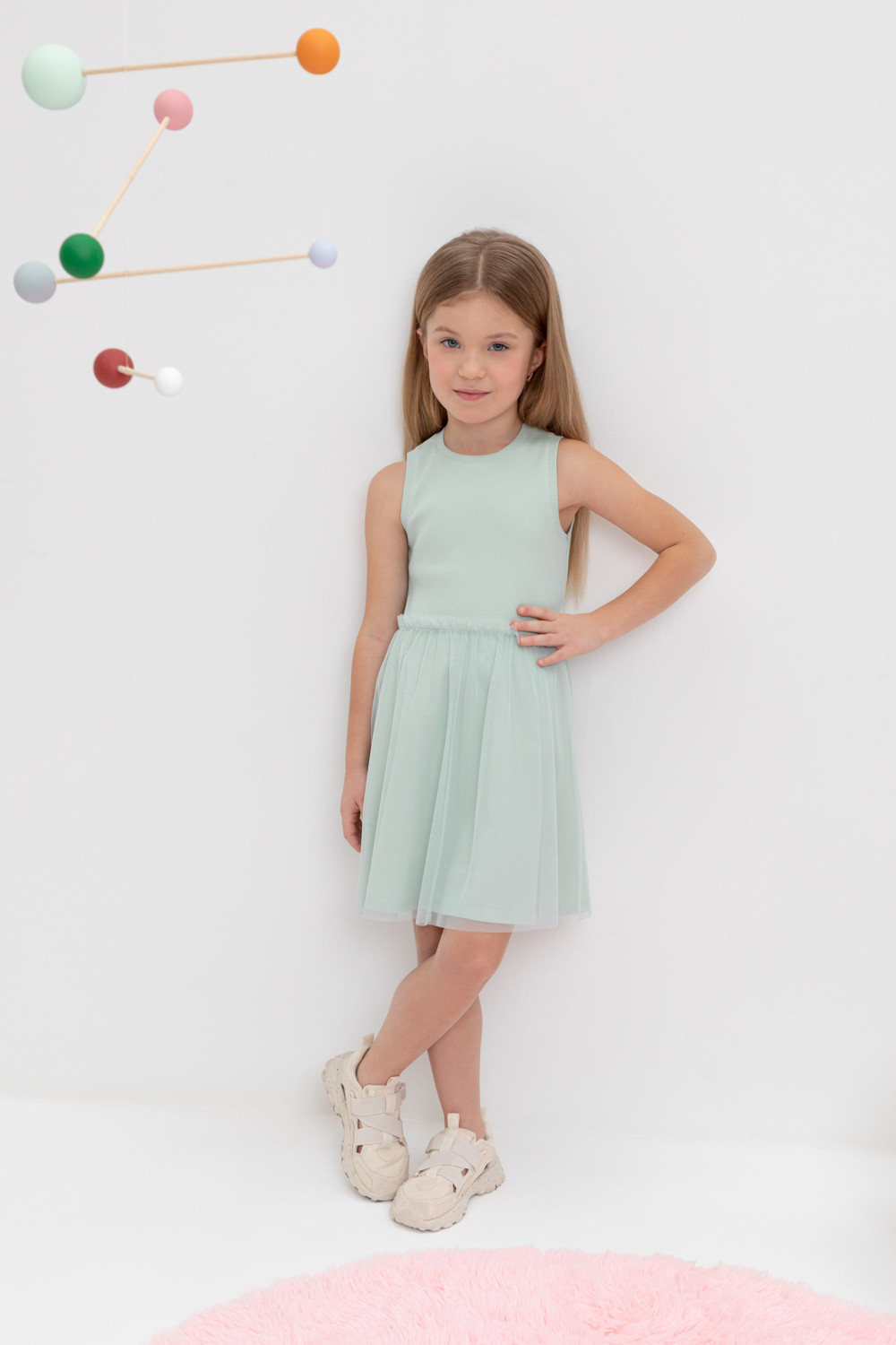 Нарядное летнее платье для девочки с подкладом из трикотажного полотна.  Верх изделия выполнен из сетки.