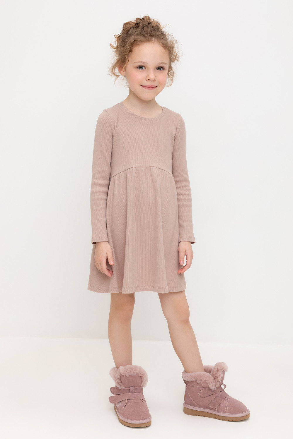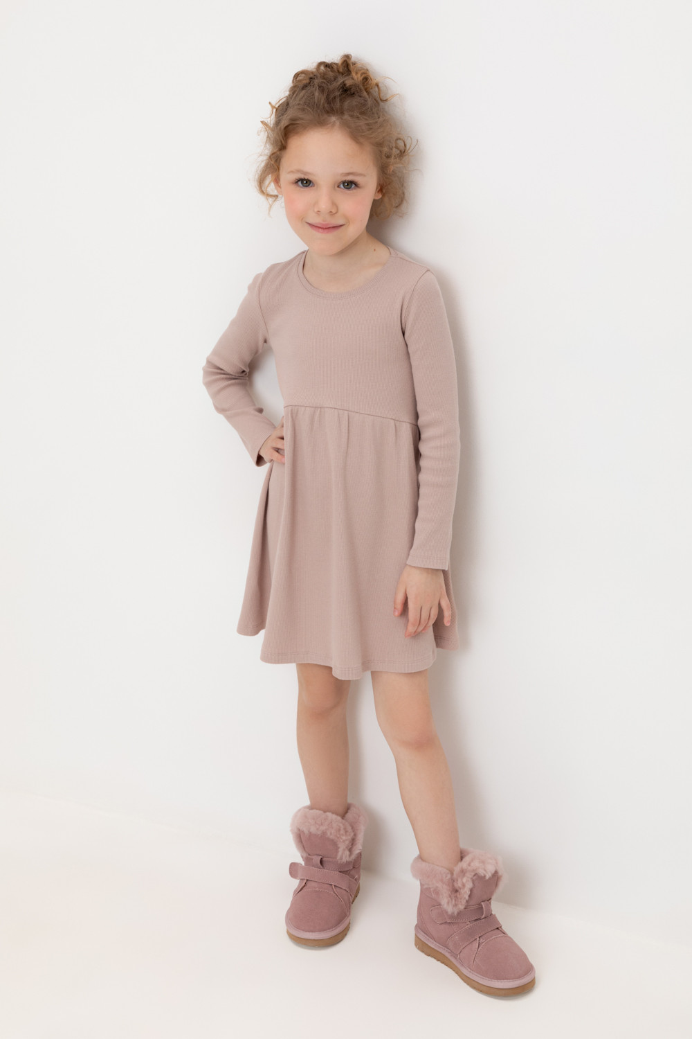 Платье для девочки из эластичного трикотажа в рубчик.