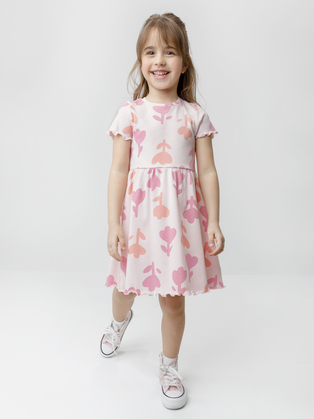 Платье для девочки из эластичного трикотажа в рубчик. Платье сохраняет форму и стойкий цвет после многочисленных стирок и идеально подходит на каждый день. Все трикотажные полотна производятся в соответствии с нормами швейцарского сертификата ЭкоТекс.