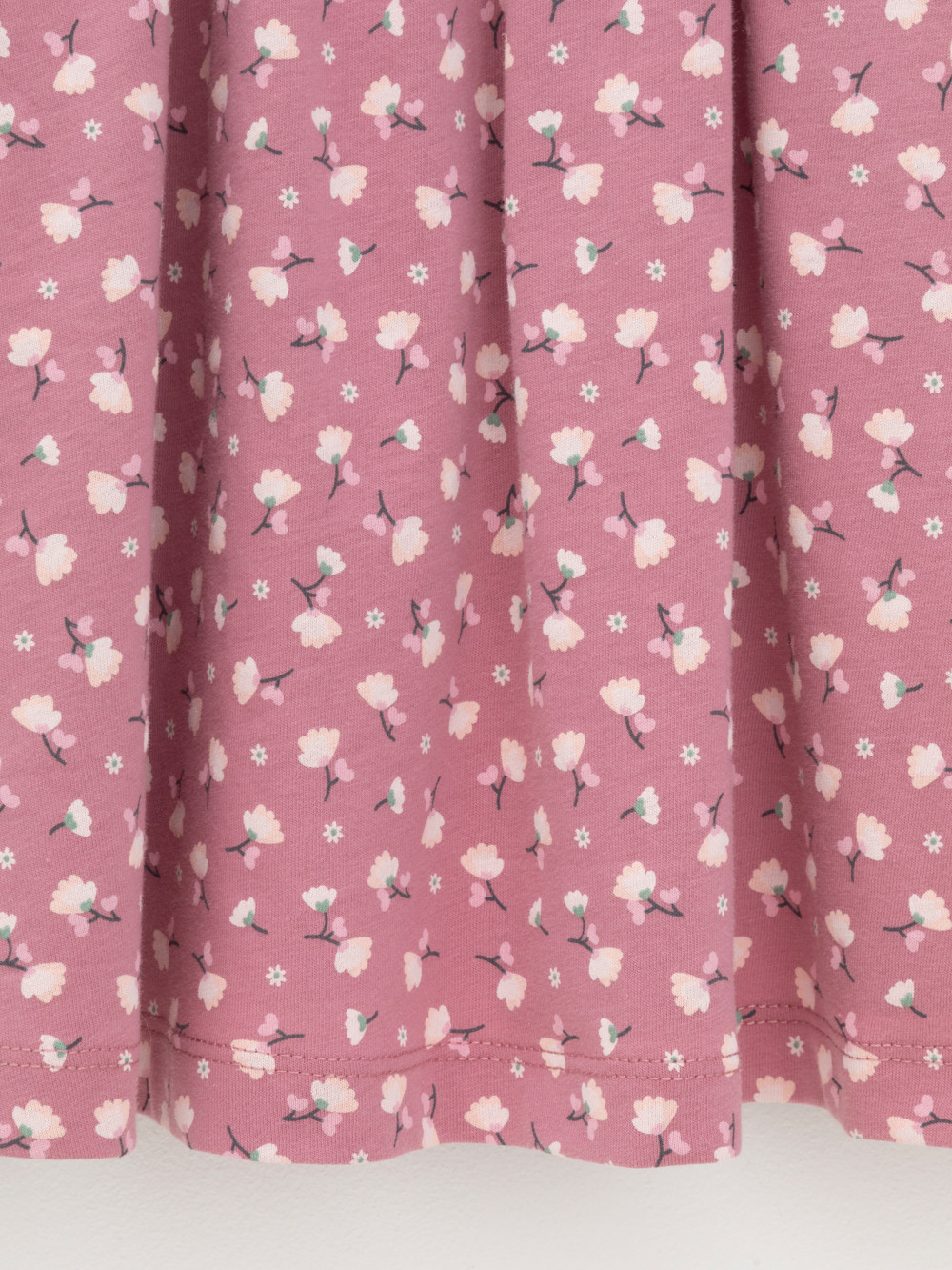 Платье с короткими рукавами и удобными карманами для девочки. Изготовлено из высококачественного гладкого трикотажа, произведённого из натурального хлопка. Для удобства одевания в размерах 92 и 98 на плече платье застёгивается на кнопки. Изделие  сохраняет форму и стойкий цвет после многочисленных стирок и идеально подходит на каждый день. Все трикотажные полотна производятся в соответствии с нормами швейцарского сертификата ЭкоТекс.