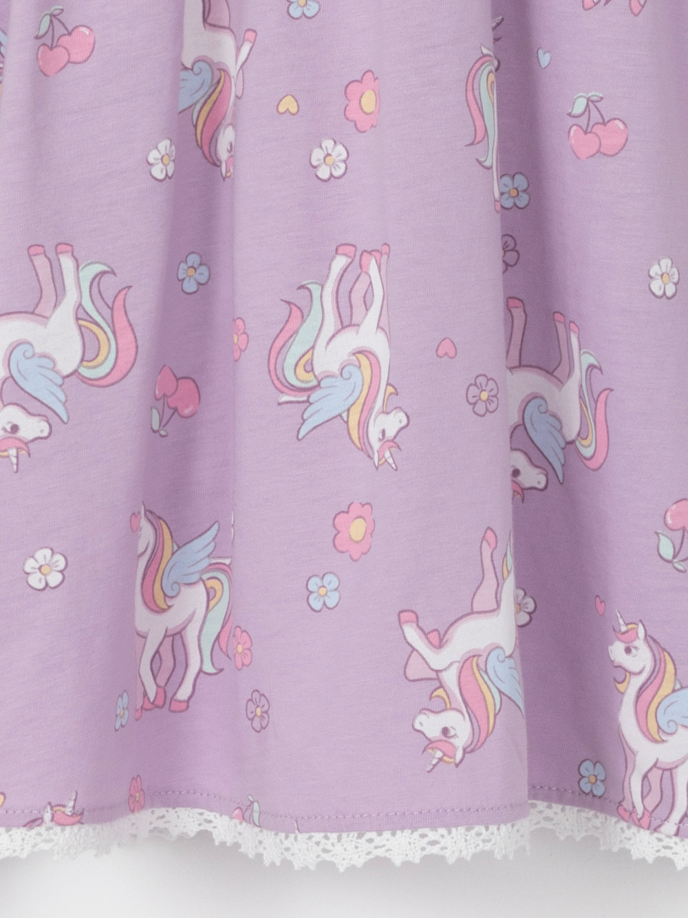 Платье с кружевом для девочки из высококачественного трикотажа, изготовленного из натурального хлопка. Застёгивается на пуговицы спереди. Платье сохраняет форму и стойкий цвет после многочисленных стирок и идеально подходит на каждый день. Все трикотажные полотна производятся в соответствии с нормами швейцарского сертификата ЭкоТекс.