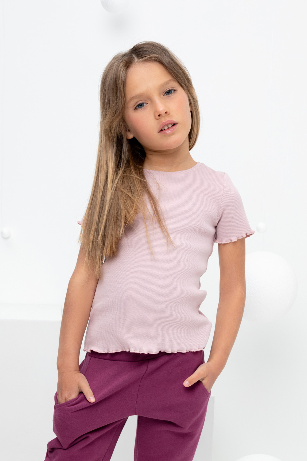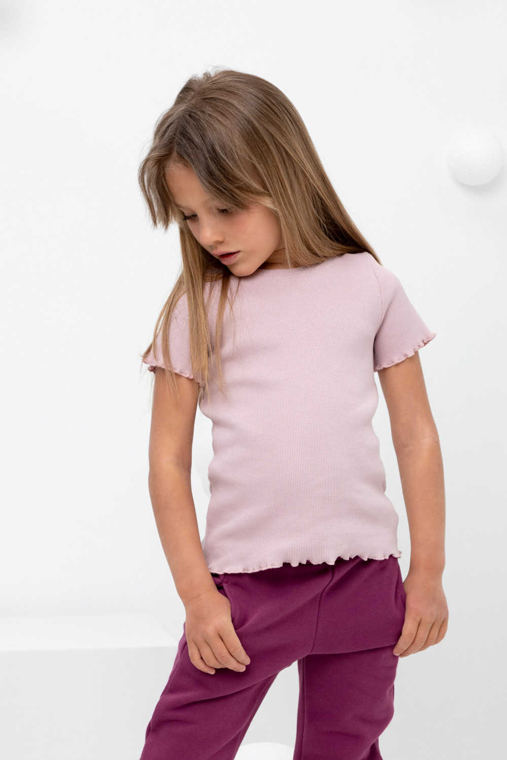 Футболка для девочки из эластичного трикотажа в рубчик