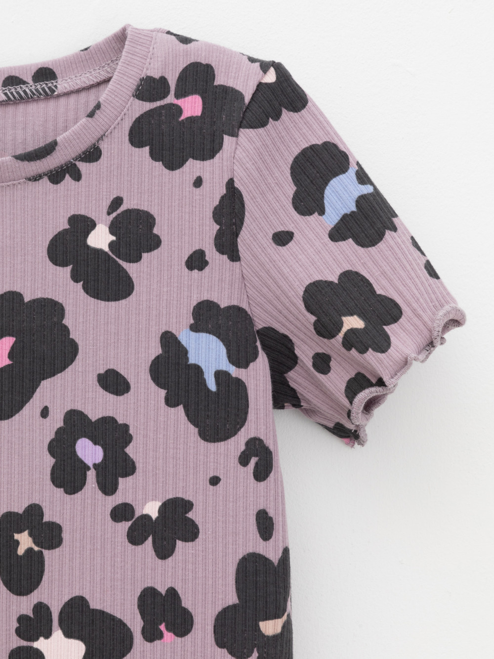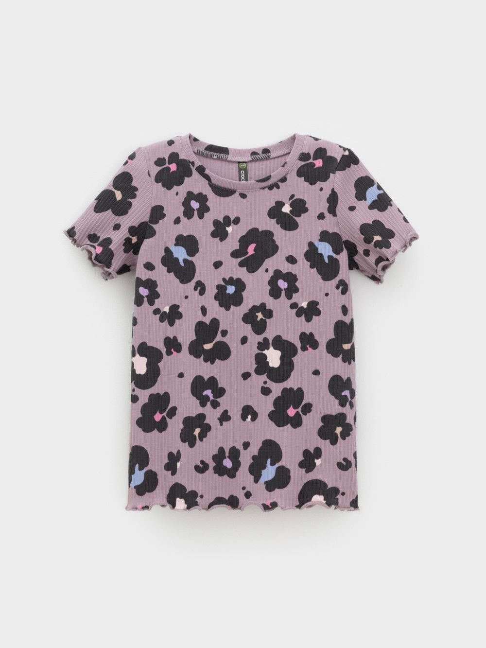 Футболка из эластичного трикотажа в рубчик для девочки. Оригинальный рисунок выполнен из стойких текстильных гипоаллергенных красителей. Изделие сохраняет цвет и форму после многократных стирок. Все трикотажные полотна производятся в соответствии с нормами швейцарского сертификата ЭкоТекс.