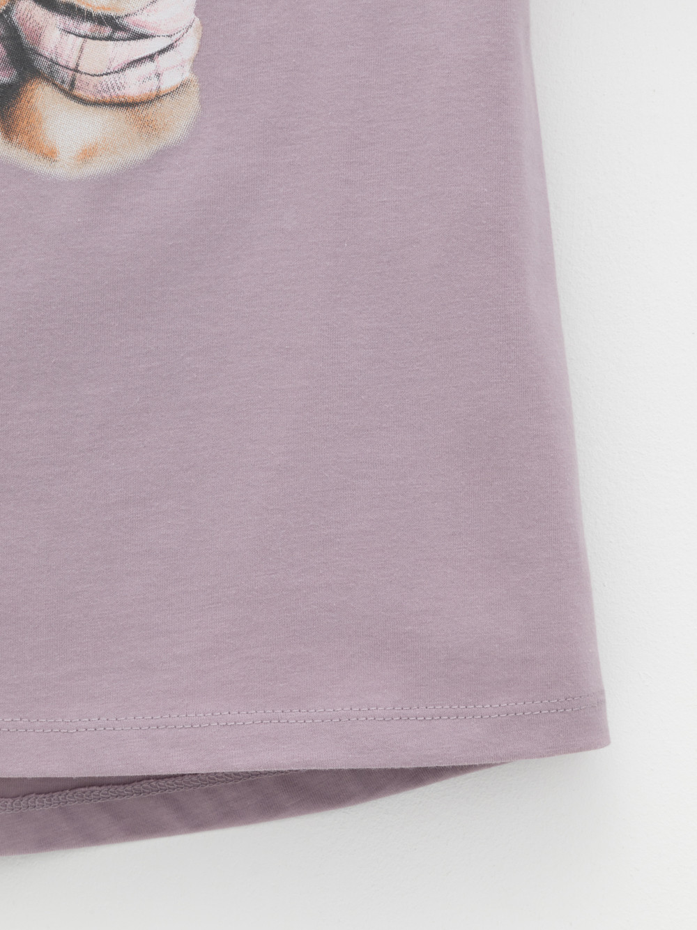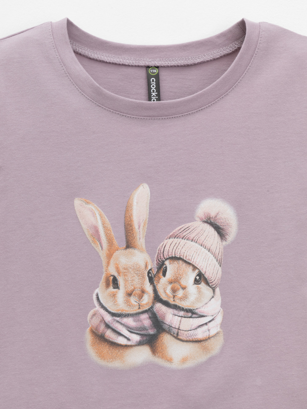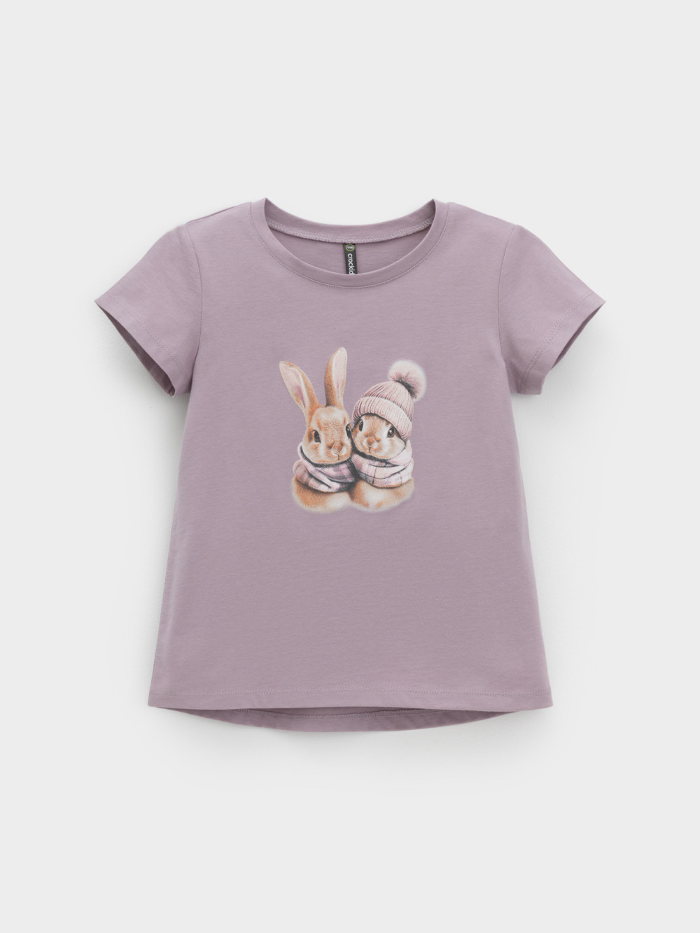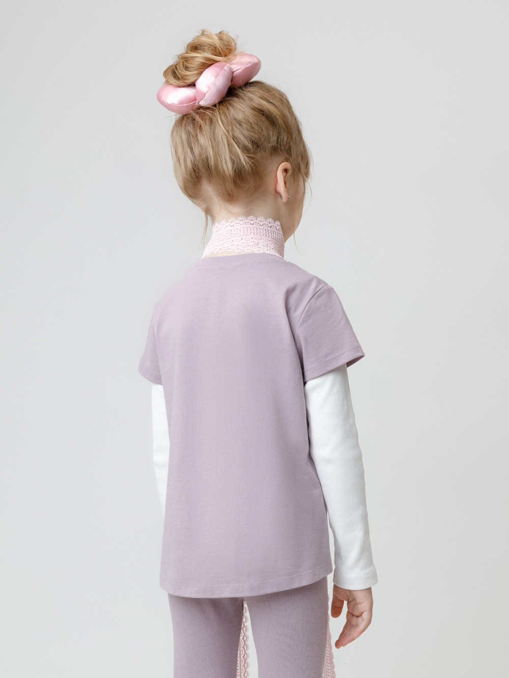 Футболка с удлинённой спинкой для девочки. Изготовлена из гладкого трикотажа, произведённого из высококачественного натурального хлопка. Для удобства одевания имеется застёжка на кнопки в размерах 92 и 98. Оригинальный принт выполнен из стойких текстильных гипоаллергенных красителей. Изделие сохраняет цвет и форму после многократных стирок. Все трикотажные полотна производятся в соответствии с нормами швейцарского сертификата ЭкоТекс.