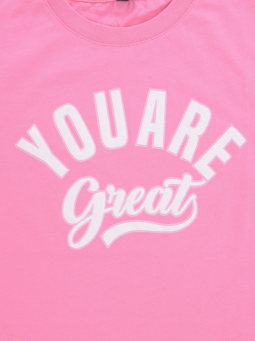 Футболка для девочки из высококачественного трикотажного полотна. Оригинальный принт выполнен из стойких текстильных гипоаллергенных красителей. Изделие сохраняет цвет и форму после многократных стирок. Все трикотажные полотна производятся в соответствии с нормами швейцарского сертификата ЭкоТекс.