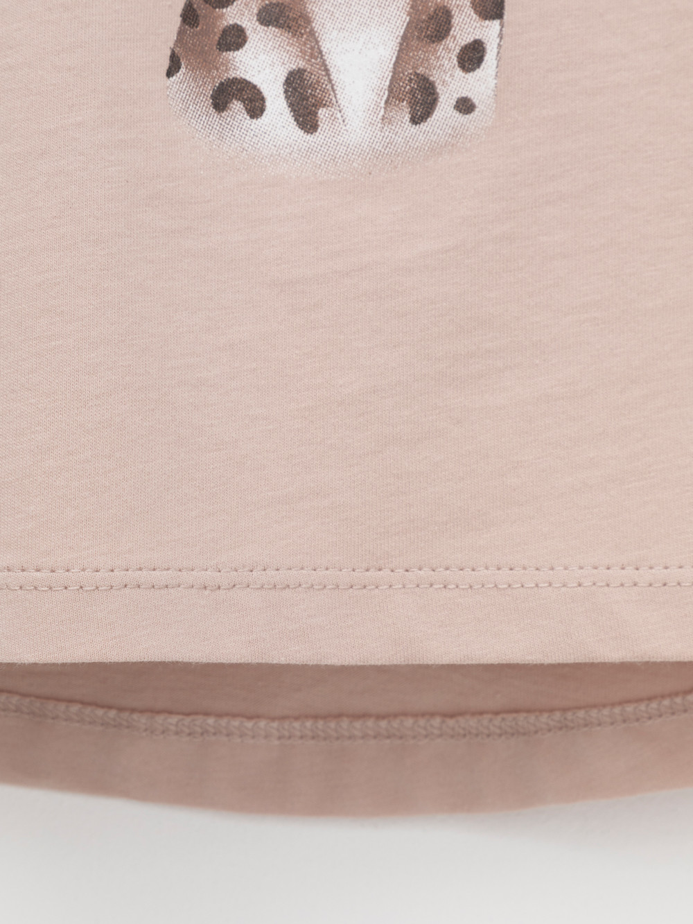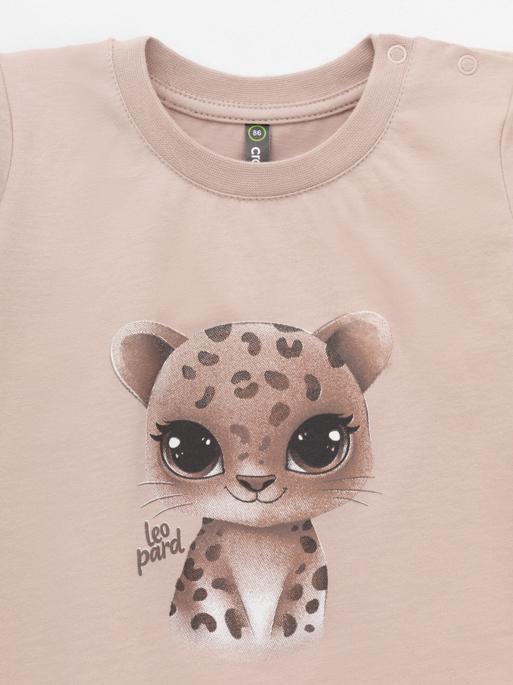 Футболка для девочки из гладкого трикотажа, произведённого из высококачественного натурального хлопка. Застёгивается на плече на кнопки. Оригинальный принт выполнен из стойких текстильных гипоаллергенных красителей. Изделие сохраняет цвет и форму после многократных стирок. Все трикотажные полотна производятся в соответствии с нормами швейцарского сертификата ЭкоТекс.