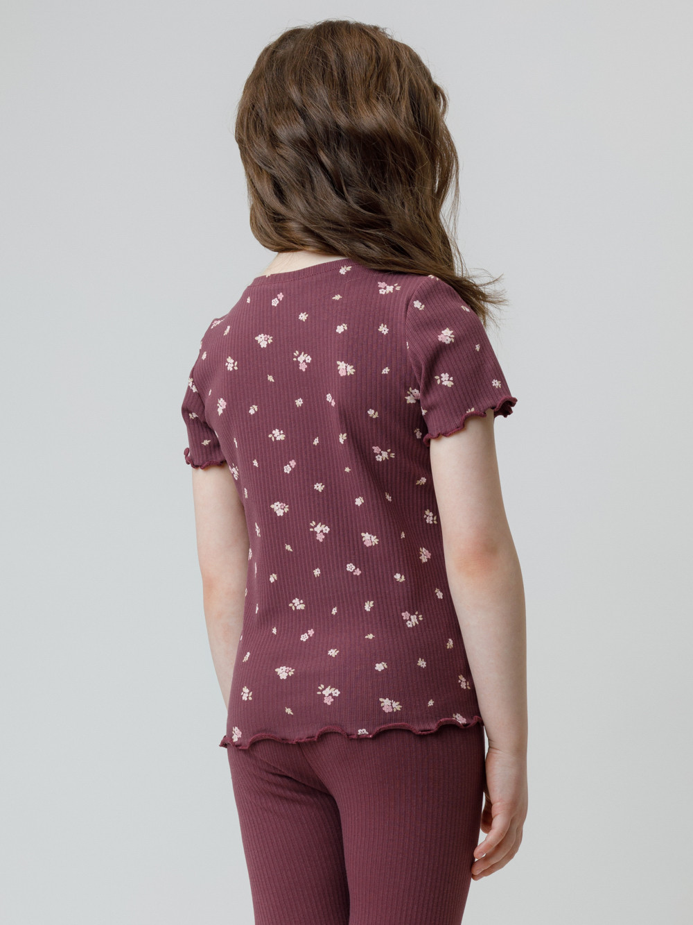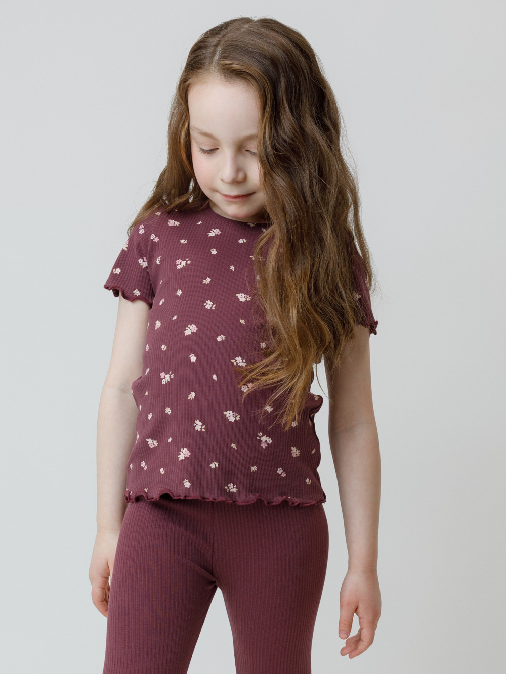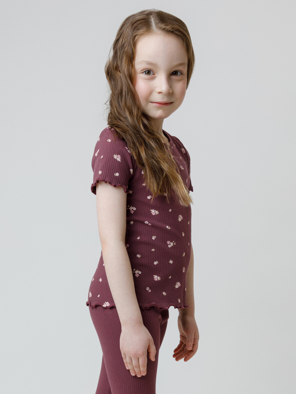 Футболка для девочки из эластичного трикотажа в рубчик. Оригинальный рисунок выполнен из стойких текстильных гипоаллергенных красителей. Изделие сохраняет цвет и форму после многократных стирок. Все трикотажные полотна производятся в соответствии с нормами швейцарского сертификата ЭкоТекс.
