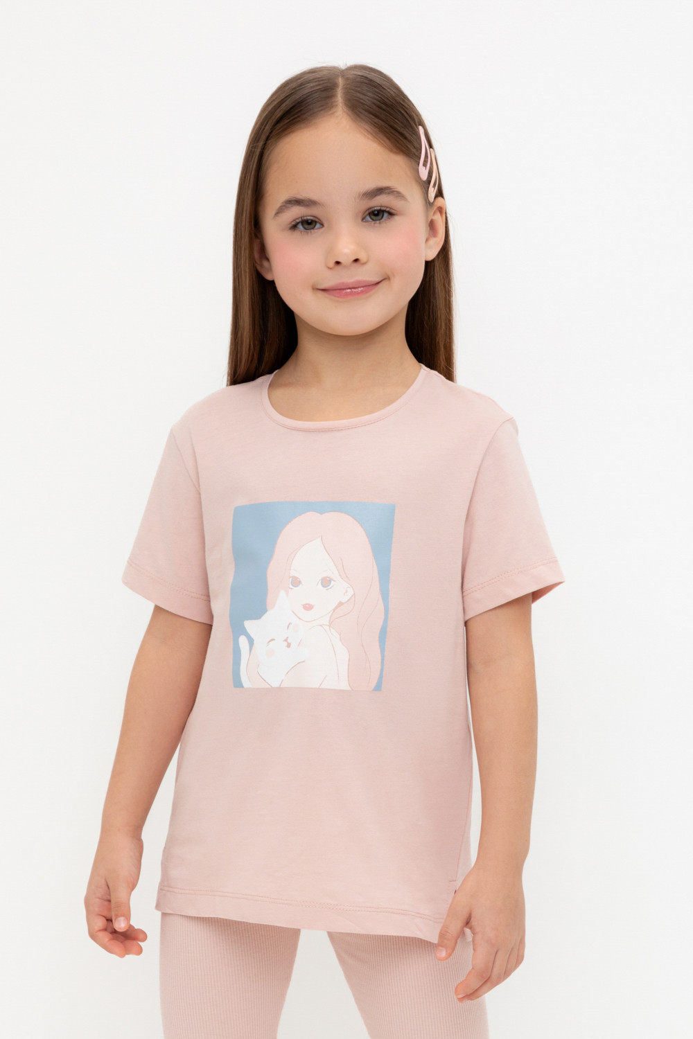 Футболка для девочки из высококачественного трикотажного полотна. Для удобства одевания имеется застежка на кнопки в размерах 92 и 98. Оригинальный принт выполнен из стойких текстильных гипоаллергенных красителей.