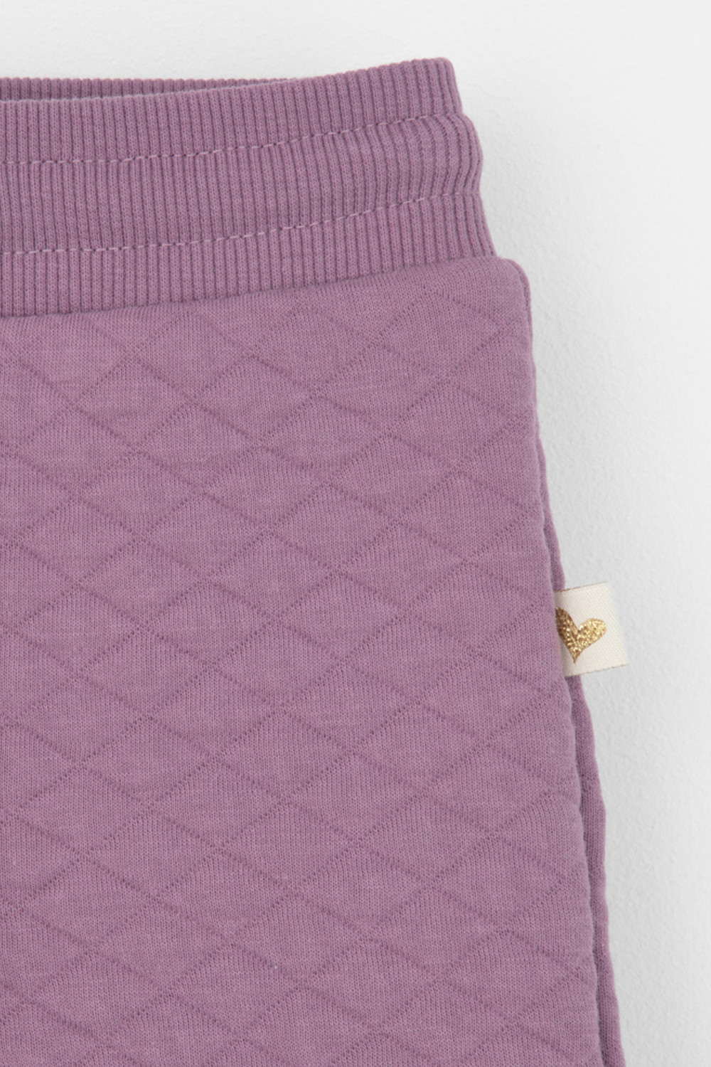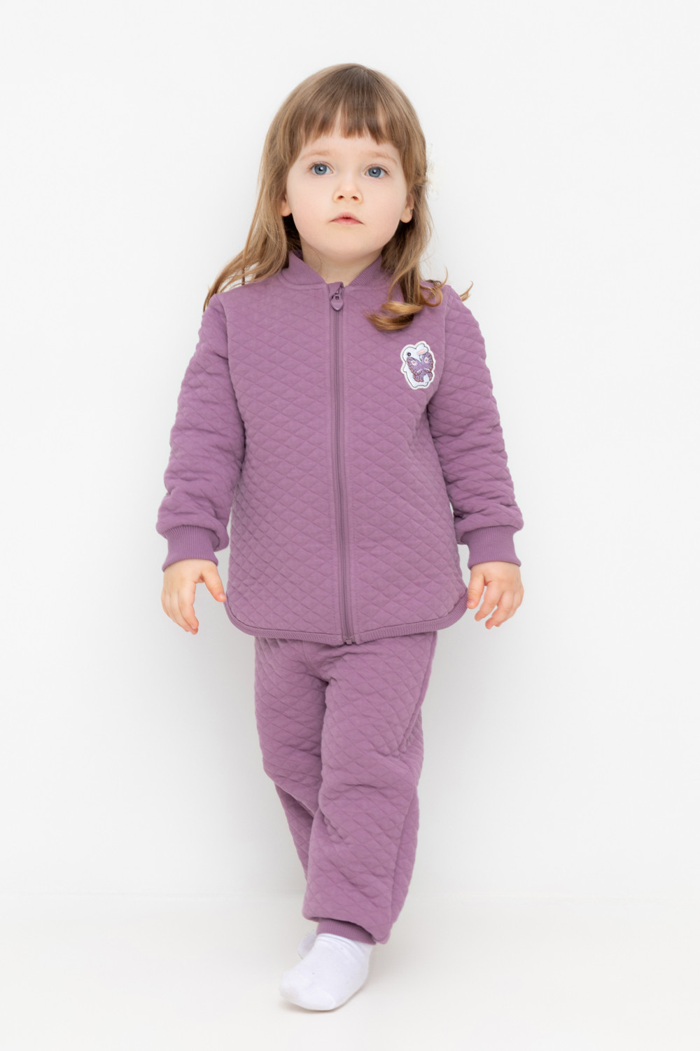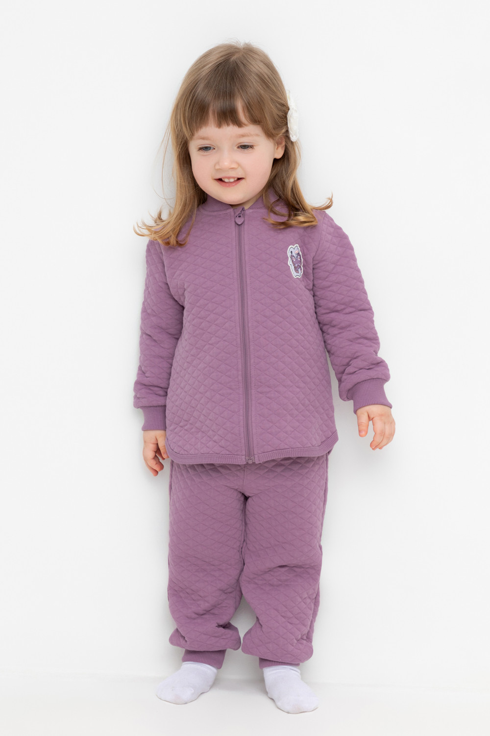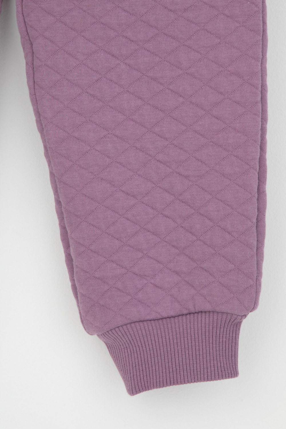 Трикотажные брюки для девочки из стеганого трикотажного полотна. Эластичный пояс на резинке регулируется по ширине с помощью шнурка, внизу манжеты на резинке.