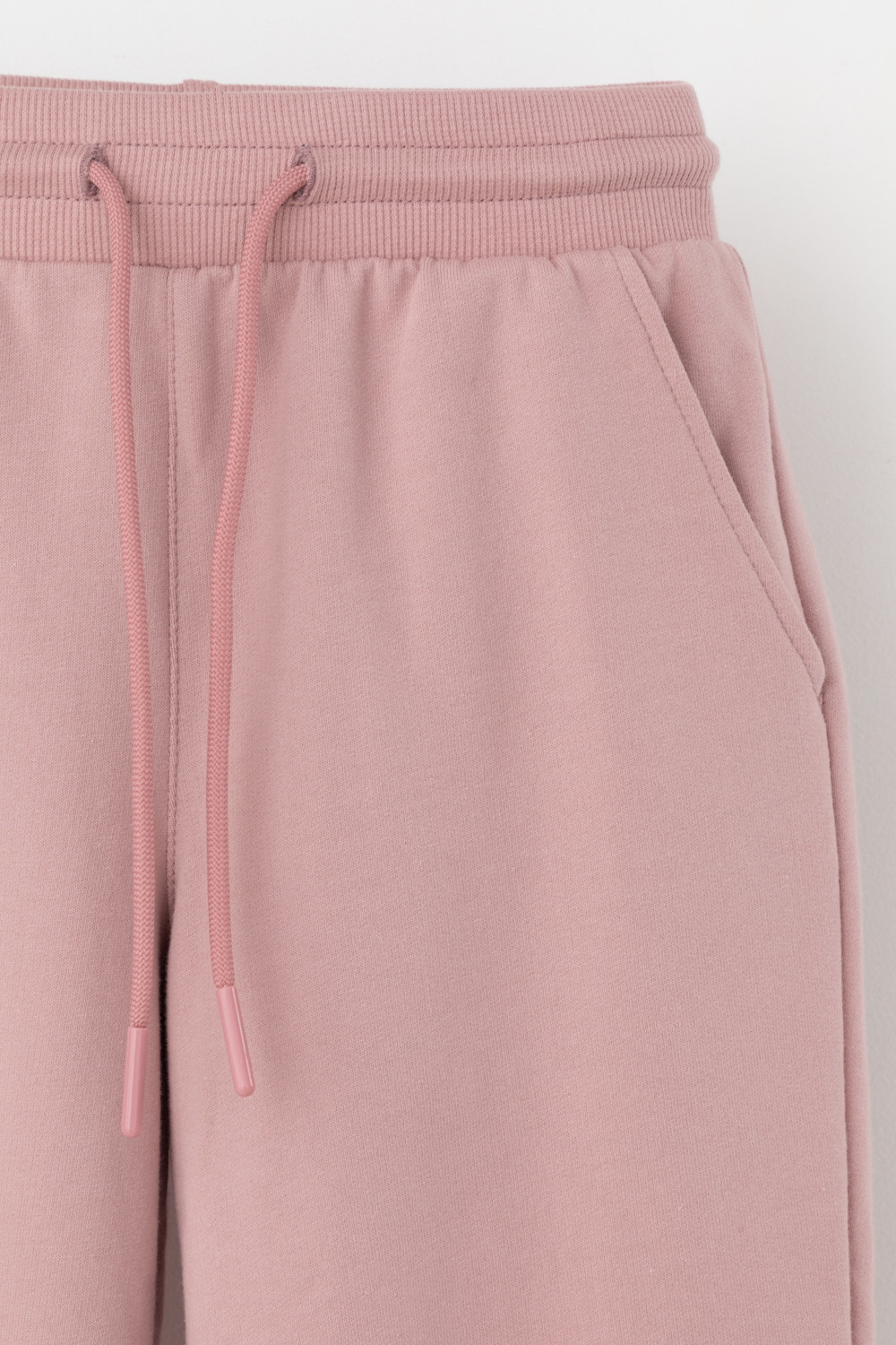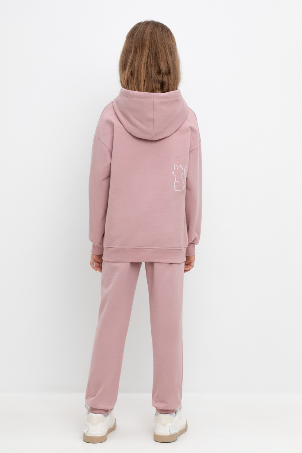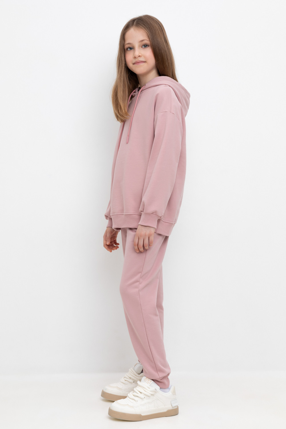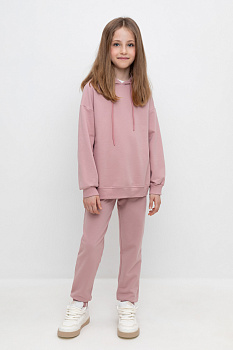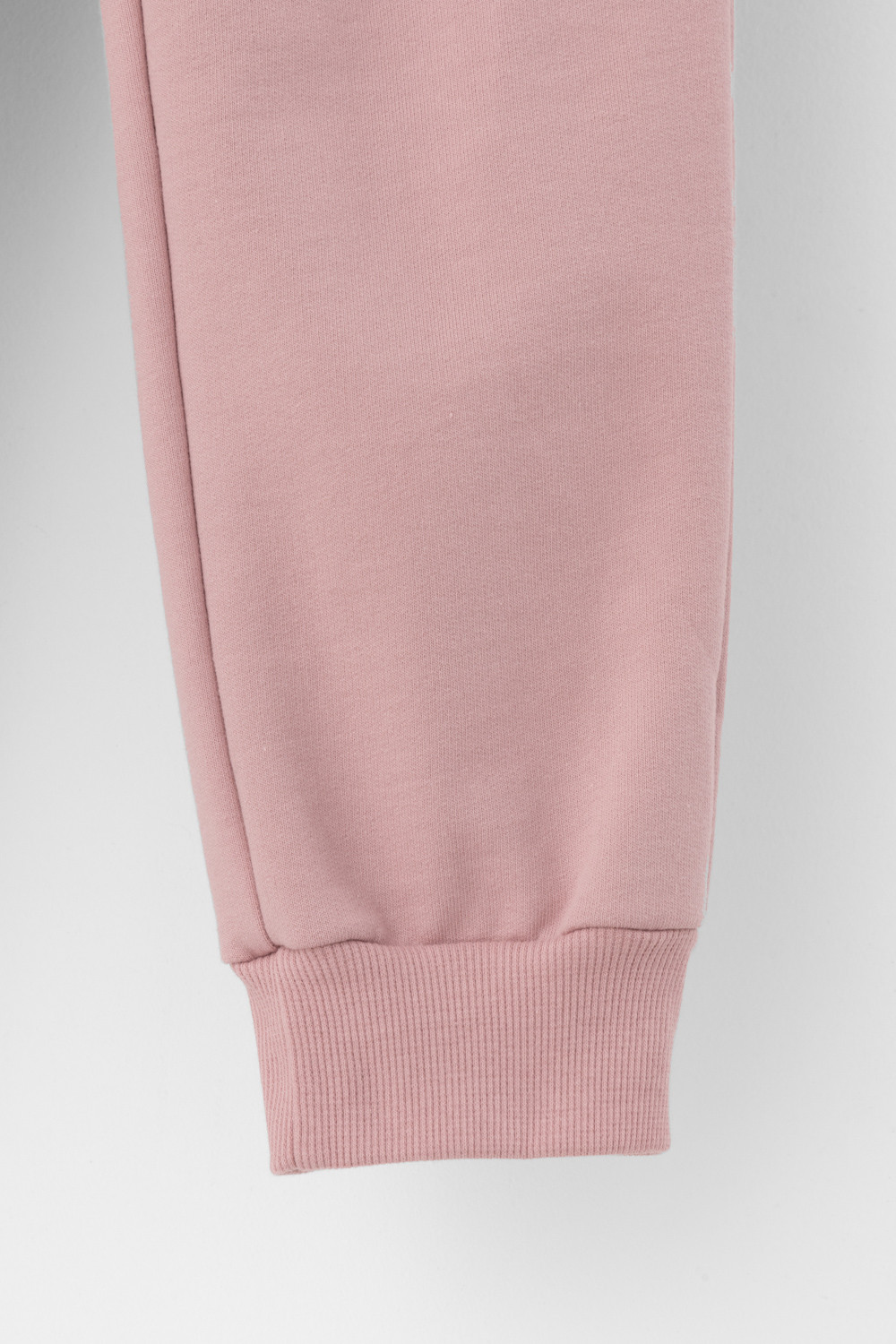 Трикотажные брюки для девочки из футера трехнитки с начесом. Эластичный пояс на резинке регулируется по ширине с помощью шнурка, внизу манжеты из эластичного кашкорсе.