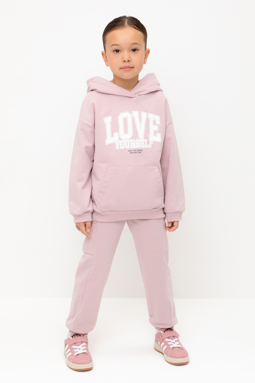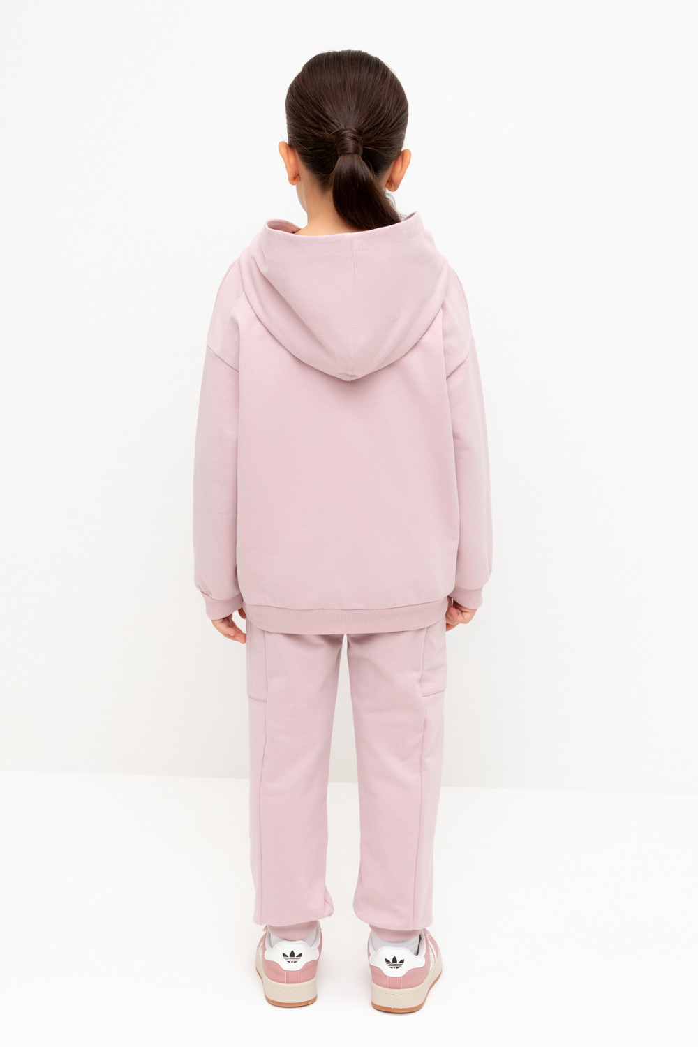 Брюки для девочки из мягкого петельчатого трикотажа. Эластичный пояс на резинке регулируется по ширине с помощью шнурка, по бокам два удобных кармана, внизу эластичные манжеты.