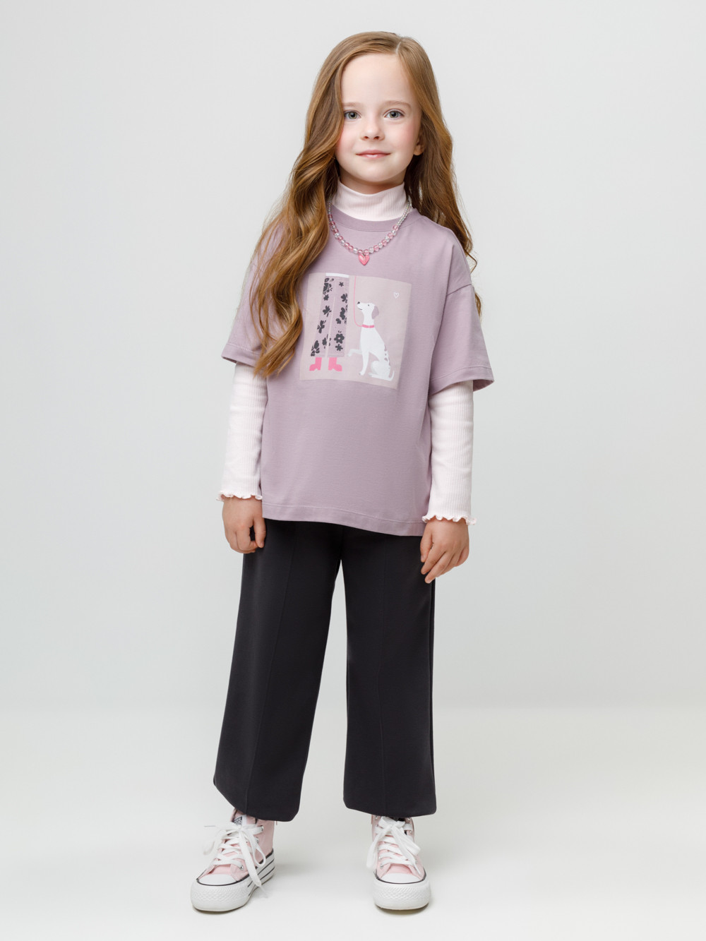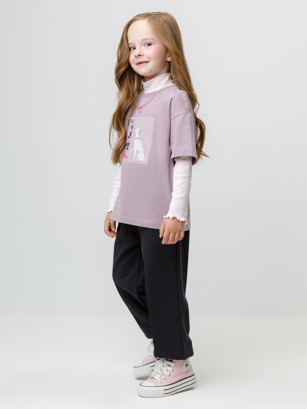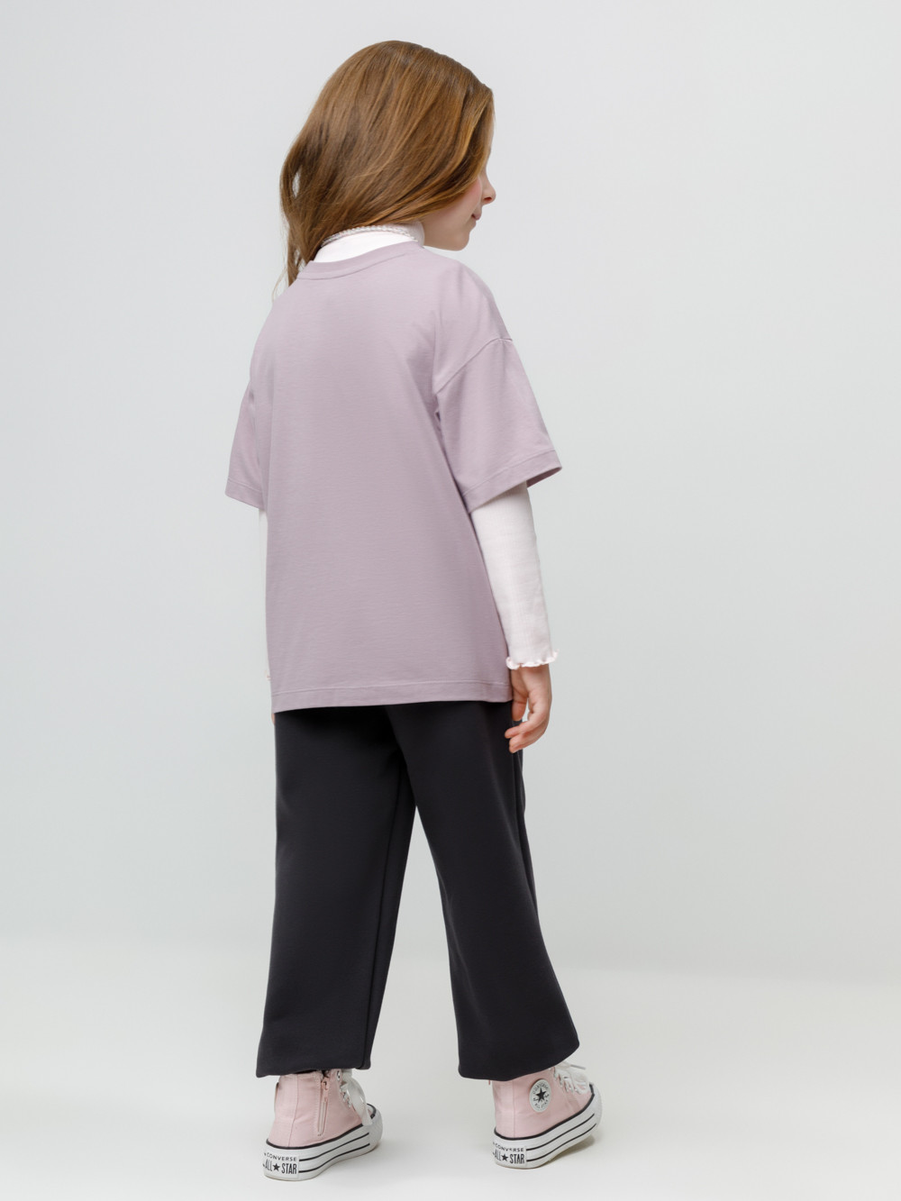 Брюки со стрелками для девочки из мягкого петельчатого трикотажа. Эластичный пояс на резинке регулируется по ширине с помощью шнурка. Внизу эластичные манжеты. По бокам два удобных кармана. Изделие сохраняет цвет и форму после многократных стирок. Все трикотажные полотна производятся в соответствии с нормами швейцарского сертификата ЭкоТекс.