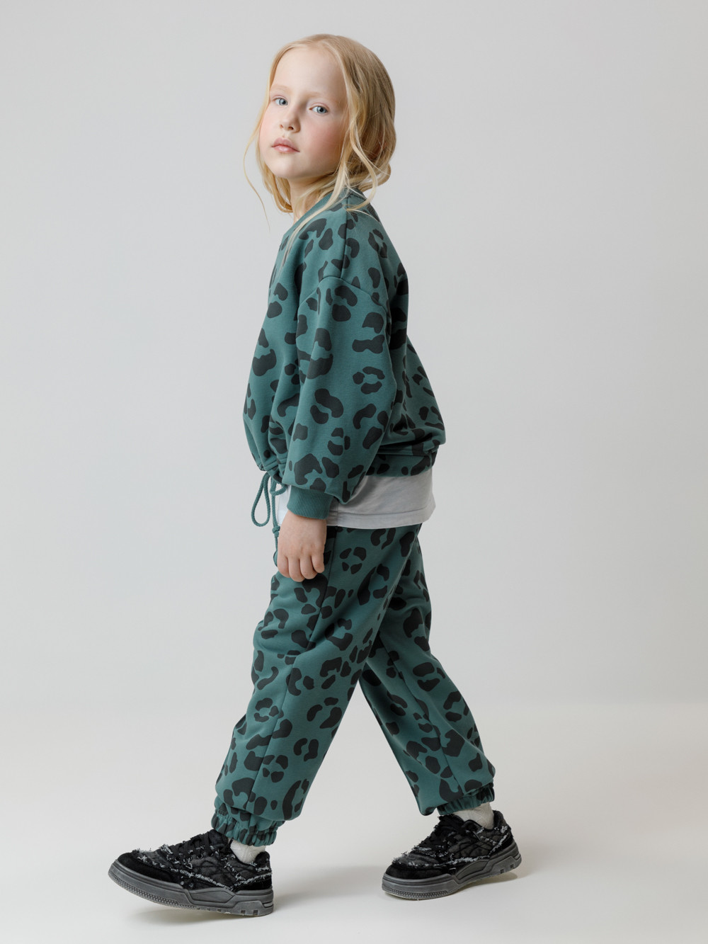 Брюки для девочки из мягкого петельчатого футера. В составе 80% натурального хлопка и 20% полиэстера, при этом полиэстер ввязан внутрь по особой технологии и не соприкасается с кожей. Модель с эластичным поясом на резинке регулируется по ширине с помощью шнурка. Спереди защипы, низ на манжетах. Два кармана по бокам. Все трикотажные полотна производятся в соответствии с нормами швейцарского сертификата ЭкоТекс.