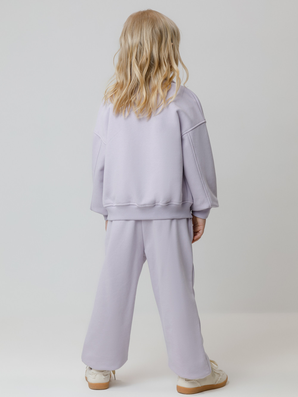 Брюки из мягкого петельчатого футера для девочки. Модель с эластичным поясом на резинке. По бокам два удобных кармана. Низ на манжетах. Изделие сохраняет цвет и форму после многократных стирок. Все трикотажные полотна производятся в соответствии с нормами швейцарского сертификата ЭкоТекс.