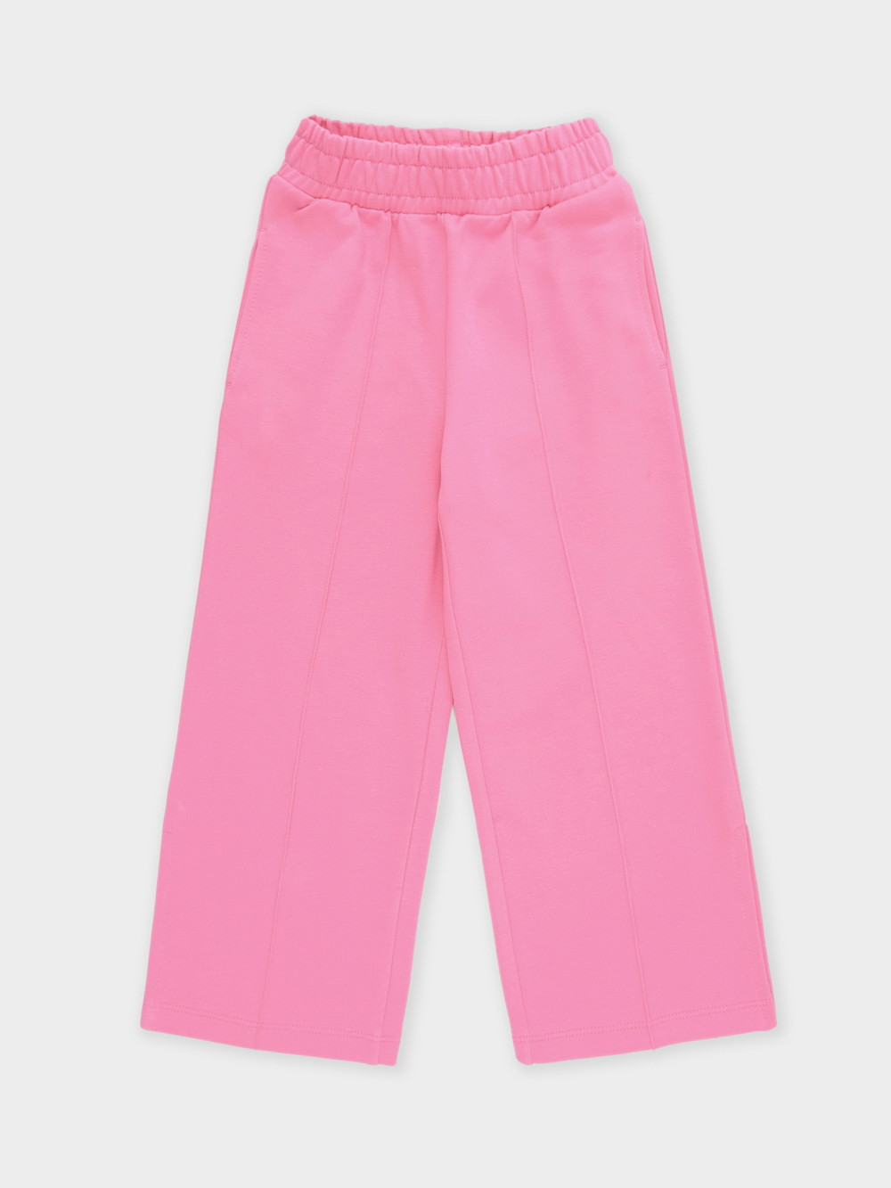 Однотонные брюки со стрелками для девочки. Изготовлены из мягкого трикотажа футера диагональ. Модель с эластичным поясом на резинке. Снизу по бокам разрезы. Изделие сохраняет цвет и форму после многократных стирок. Все трикотажные полотна производятся в соответствии с нормами швейцарского сертификата ЭкоТекс.