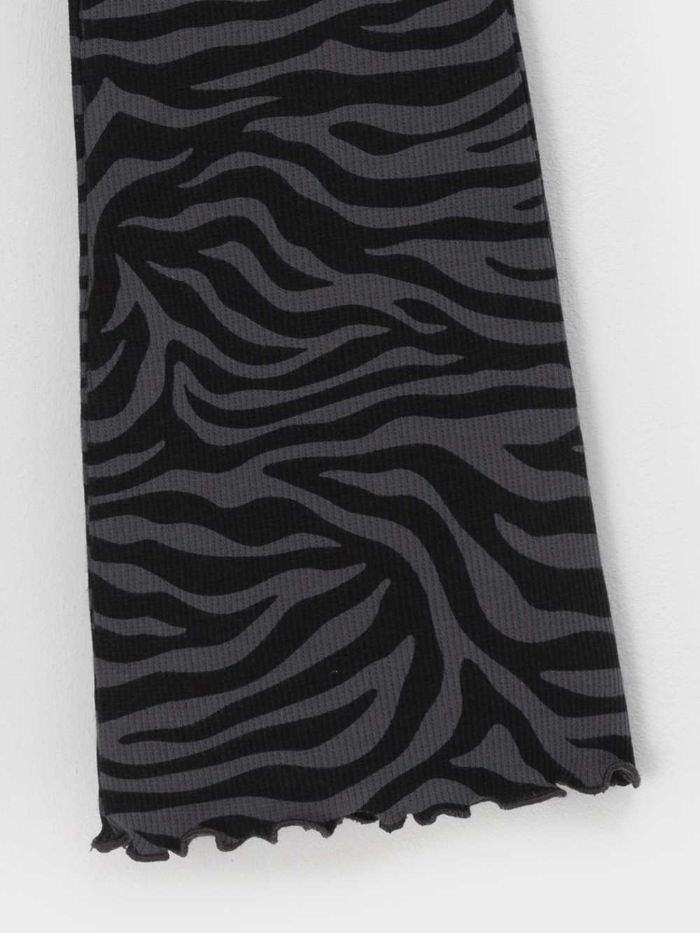 Стильные брюки клеш для девочки из эластичного трикотажа в рубчик. В состав полотна входит натуральный хлопок высокого качества с небольшим добавлением эластана, поэтому брюки отлично дышат и хорошо тянутся. Мягкий пояс на резинке идеально садится по фигуре. Оригинальный рисунок выполнен из стойких текстильных гипоаллергенных красителей. Изделие сохраняет цвет и форму после многократных стирок. Все трикотажные полотна производятся в соответствии с нормами швейцарского сертификата ЭкоТекс.