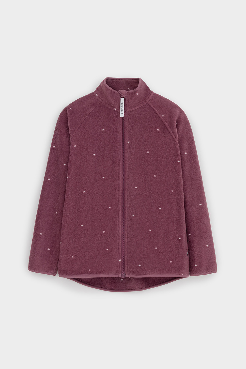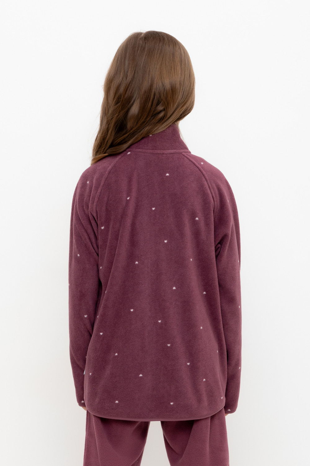 Флисовая куртка для девочки. У изделия удлинённая спинка, высокий воротник, предусмотрена защита шеи и подбородка. Рукава-реглан и низ изделия обработаны эластичным кантом для лучшего прилегания к телу, по бокам два кармана. Оригинальная набивка выполнена из стойких, гипоаллергенных текстильных красителей. Куртка сохраняет цвет и форму после многократных стирок.