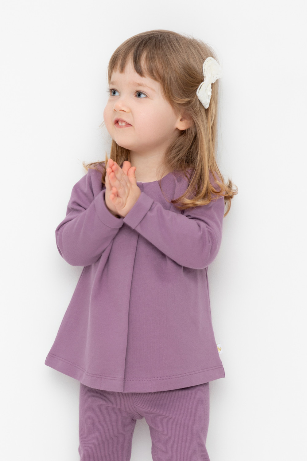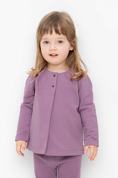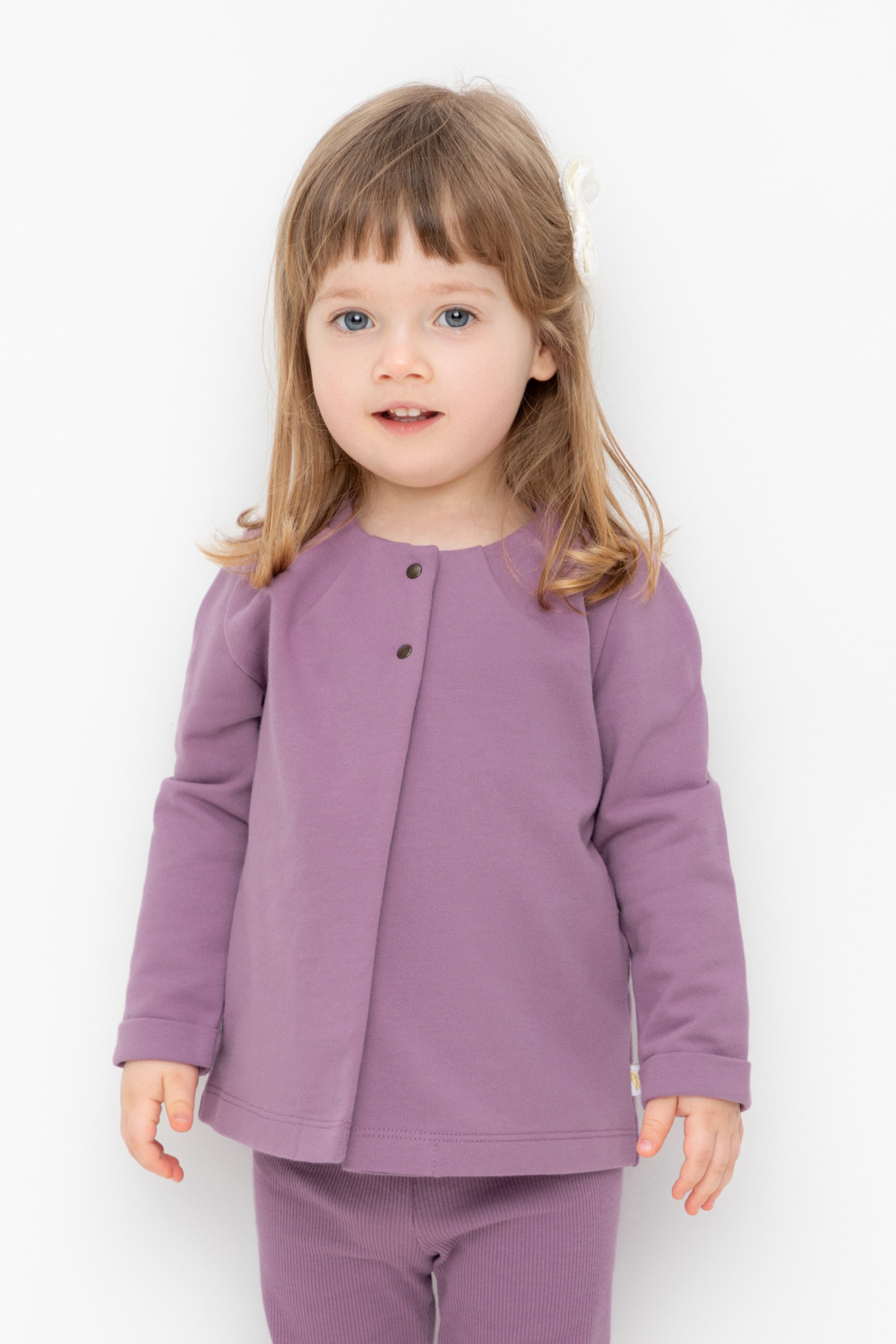 Трикотажный жакет для девочки из петельчатого футера. По горловине красивые складки. Застегивается сверху на кнопки.