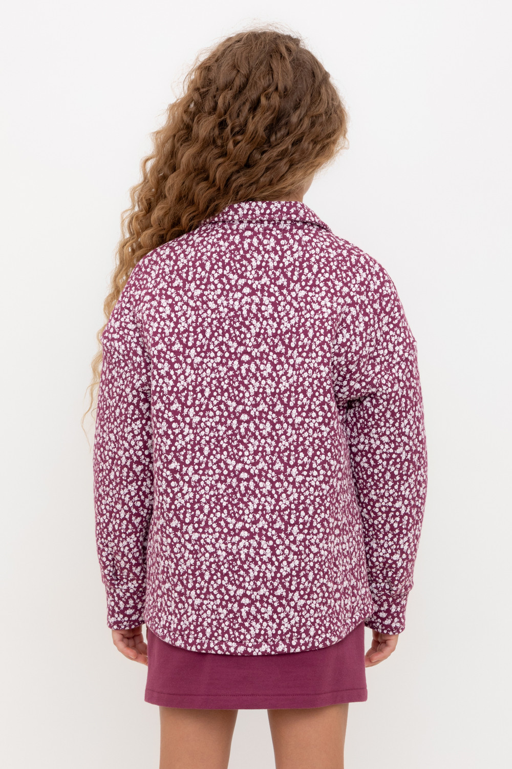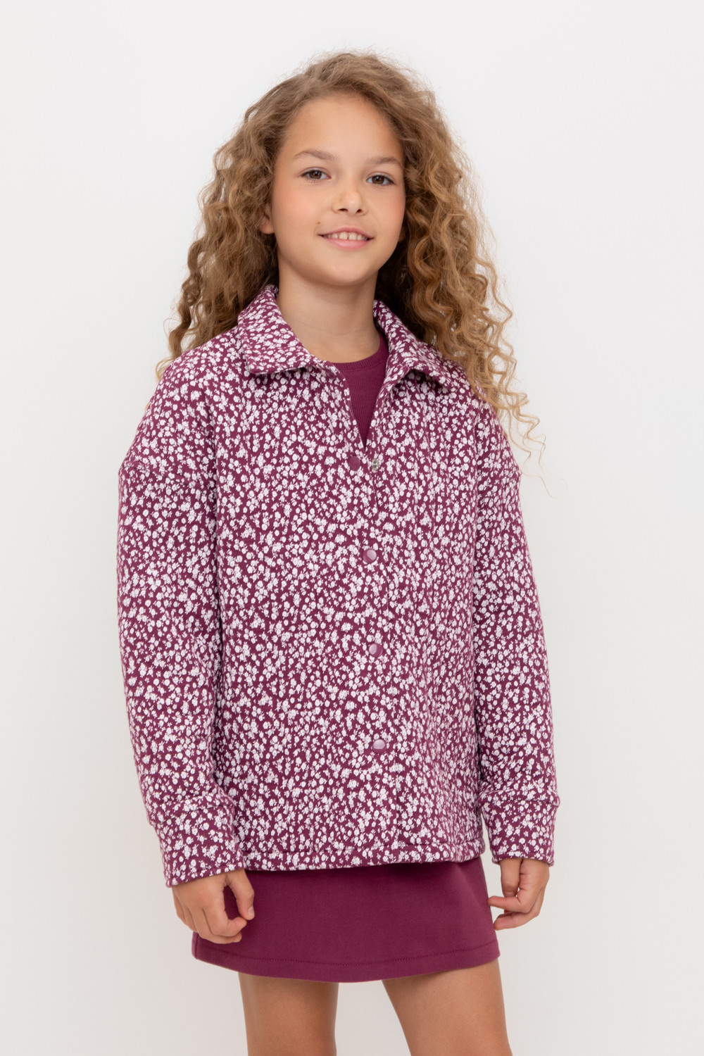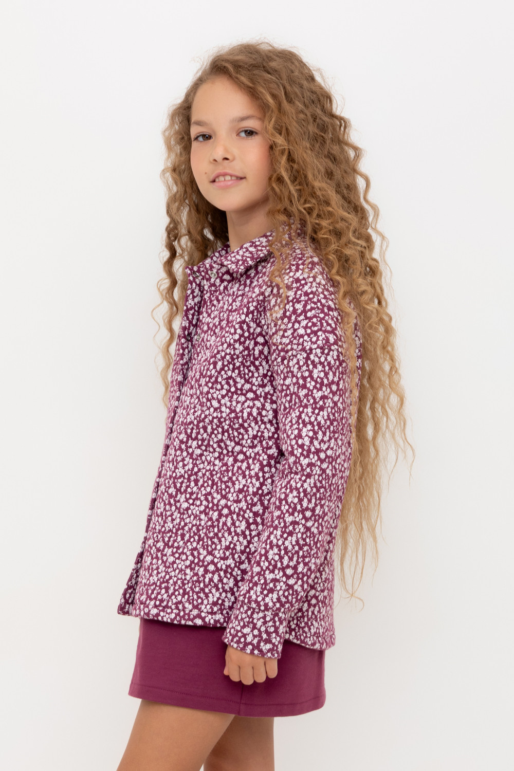 Свободная трикотажная рубашка для девочки из мягкого капитония на кнопках. Модель с закругленным низом и спущенным плечом. Оригинальная набивка выполнена из стойких текстильных гипоаллергенных красителей.