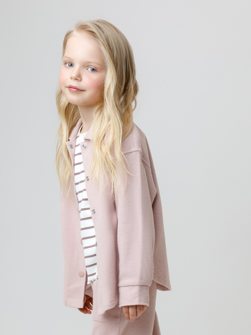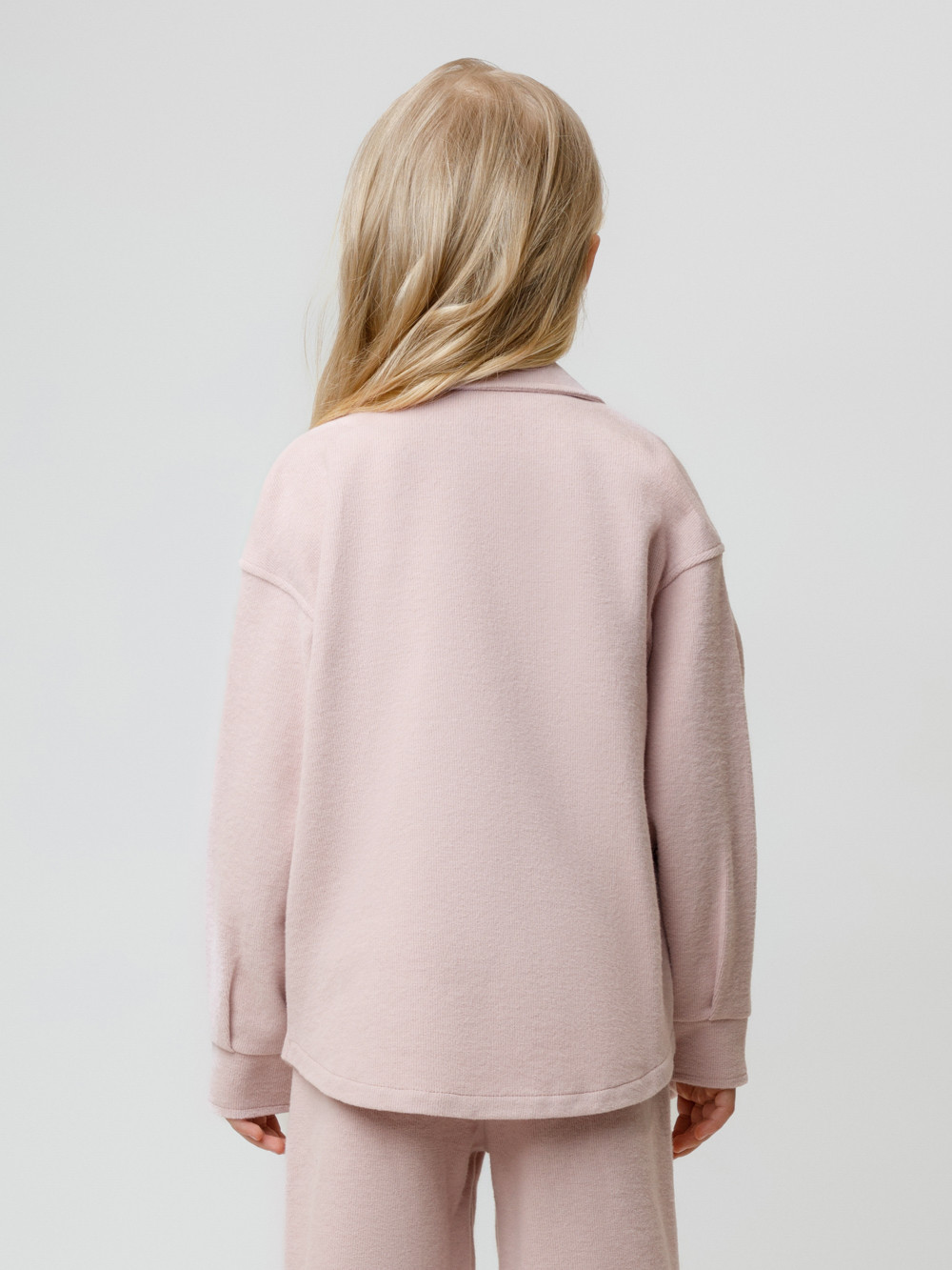 Рубашка свободного кроя для девочки из мягкого трикотажа селаник с peach эффектом.Peach эффект достигается с помощью технологии обработки полотна, при которой на его поверхности создаётся лёгкий ворс, напоминающий нежную текстуру кожи персика. Модель с закруглённым низом и спущенным плечом. Застёгивается на пуговицы. Изделие сохраняет цвет и форму после многократных стирок. Все трикотажные полотна производятся в соответствии с нормами швейцарского сертификата ЭкоТекс.