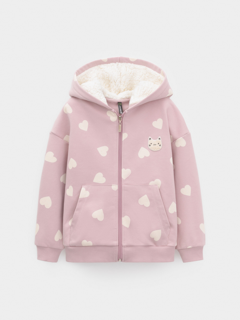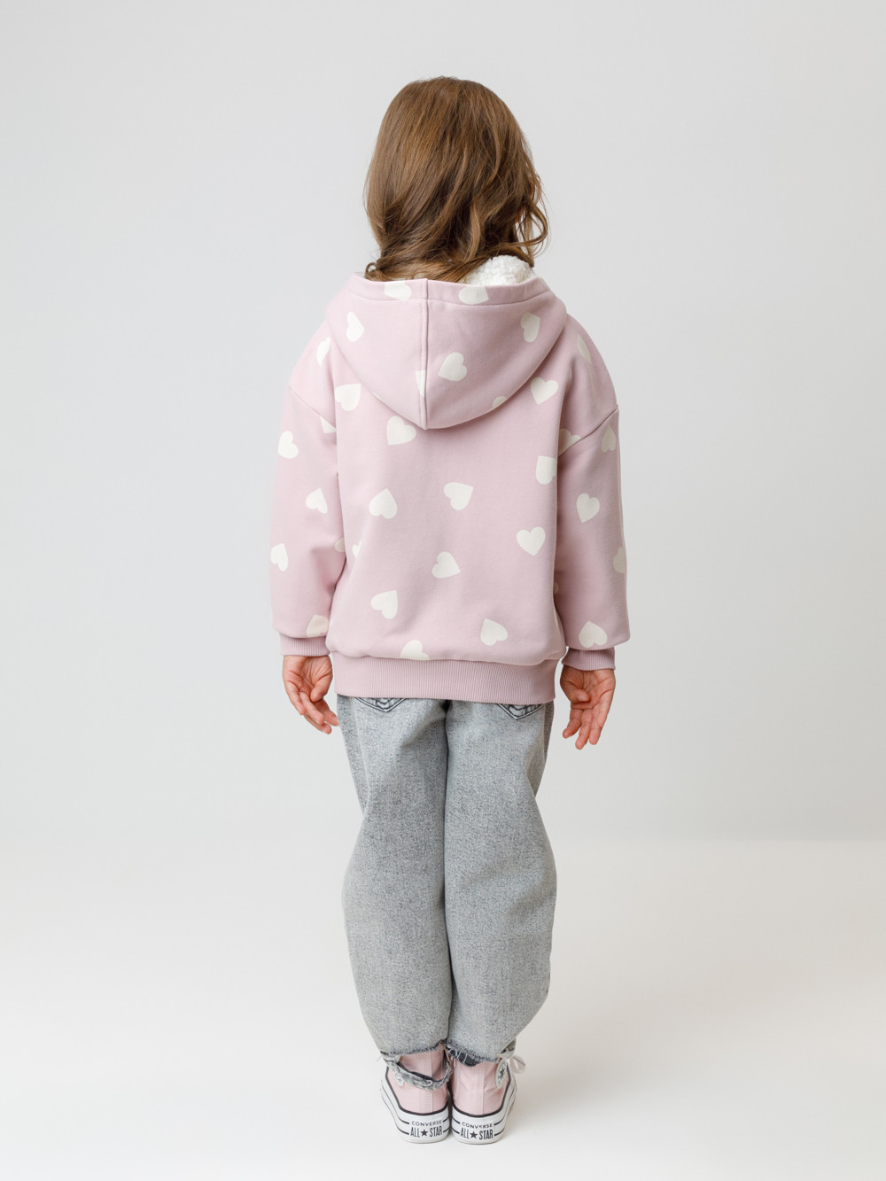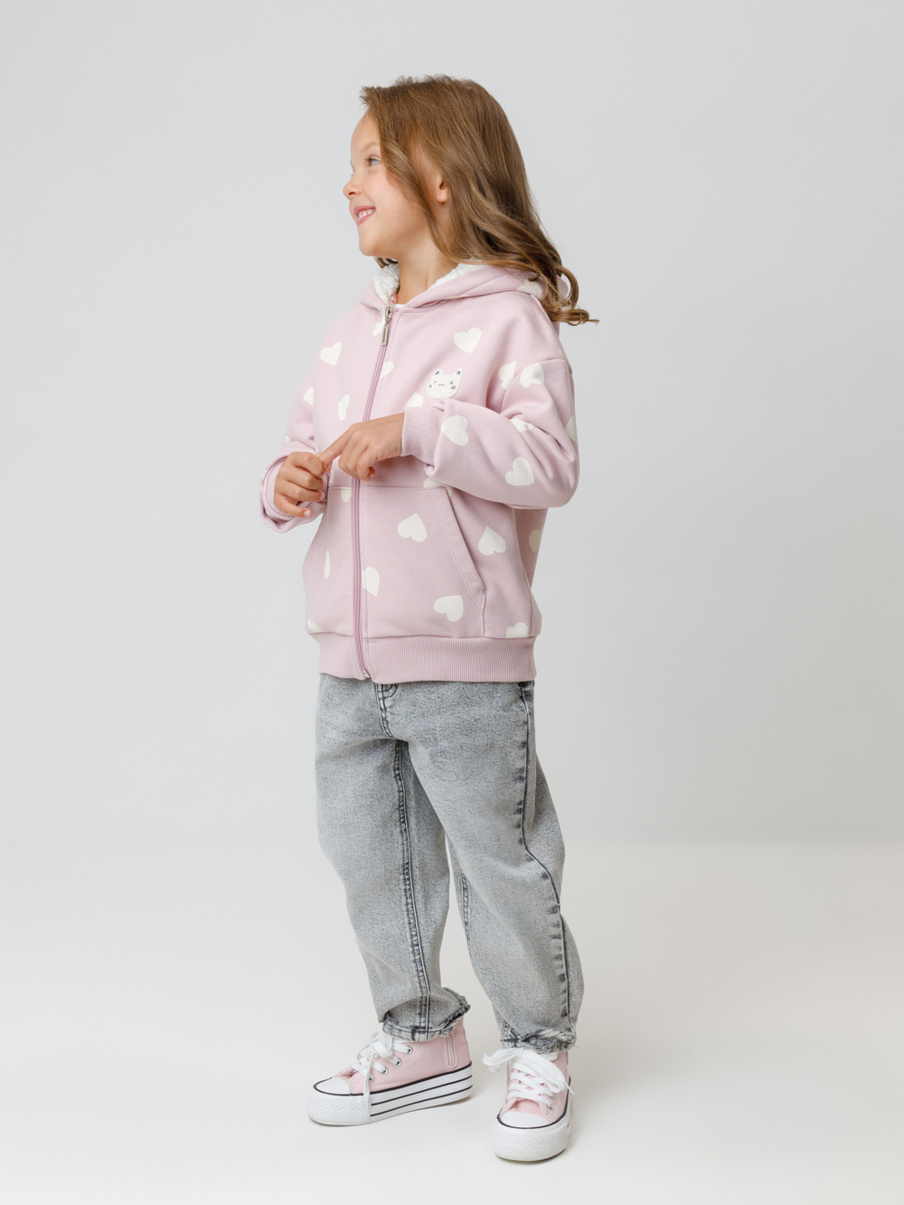 Толстовка для девочки со спущенными плечами. Изготовлена из высококачественного петельчатого футера трёхнитки. Застёгивается на молнию. В капюшоне мягкий подклад из флиса с длинным ворсом. Манжеты и пояс выполнены из эластичного полотна. Спереди удобный вместительный карман-кенгуру. Изделие сохраняет цвет и форму после многократных стирок. Все трикотажные полотна производятся в соответствии с нормами швейцарского сертификата ЭкоТекс.