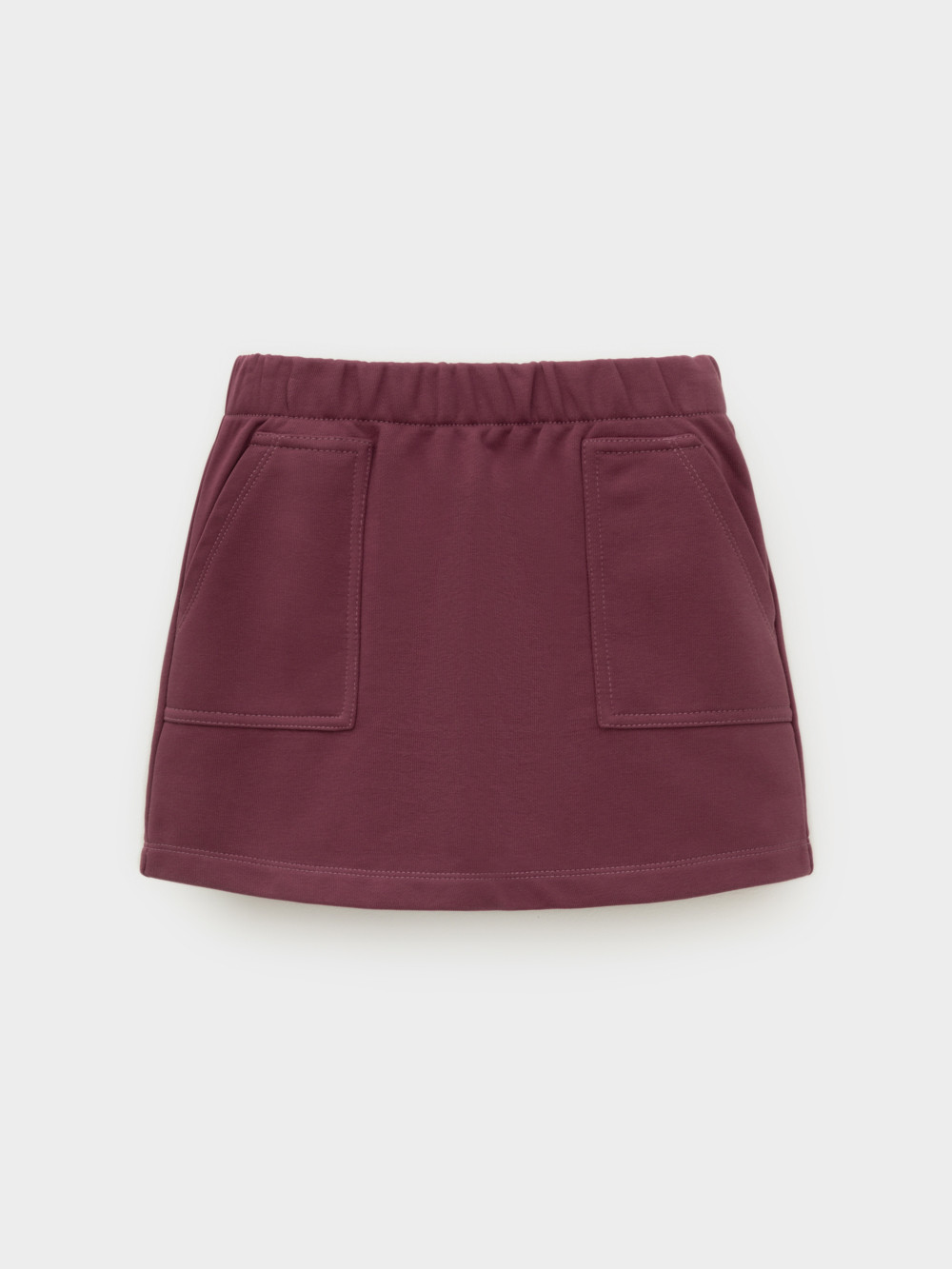 Юбка с накладными карманами для девочки. Изготовлена из мягкого петельчатого футера трёхнитки. Модель имеет эластичный пояс на резинке. Изделие сохраняет цвет и форму после многократных стирок. Все трикотажные полотна производятся в соответствии с нормами швейцарского сертификата ЭкоТекс.