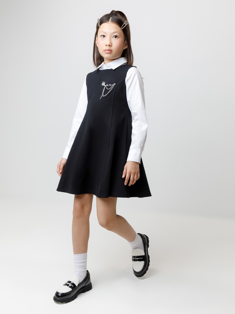 Сарафан школьный для девочки. Изготовлен из высококачественного трикотажа интерлок DOUBLE FACE. Застёгивается на потайную молнию на спинке. Идеальный и комфортный вариант на каждый день.