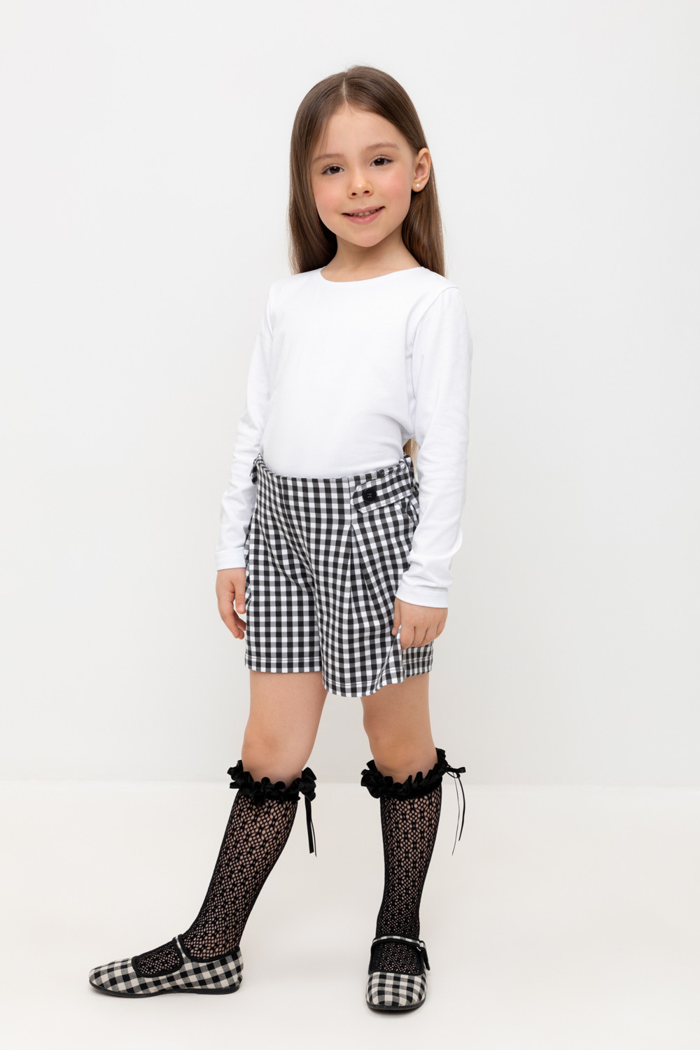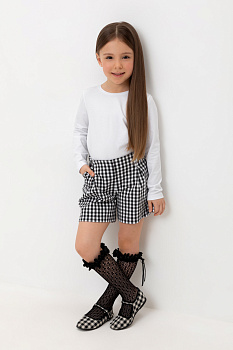 Трикотажные объемные шорты для девочки из набивного петельчатого футера. Пояс по спинке на резинке, по бокам два удобных кармана. Оригинальная набивка выполнена из стойких текстильных гипоаллергенных красителей.